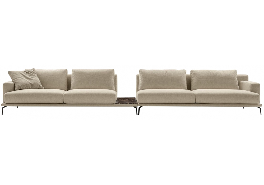 Bovisa firmato da Nicoline è un divano con struttura in legno e multistrato, molleggio seduta con cinghie elastiche. Imbottitura cuscini di seduta poliuretano espanso ecologico con densità differenti e cuscini di spalliera in piuma. Rivestimento in tessuto o pelle. Piedi in metallo lucido, satinato, canna di fucile e verniciato con i colori RAL. Elementi opzionali in marmo.
