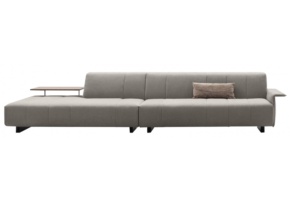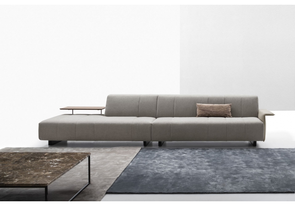 Zara Light firmato da Nicoline è un divano con struttura in legno e multistrato, molleggio seduta e schienale con cinghie elastiche. Bracciolo in metallo rivestito di poliuretano espanso. Imbottitura in poliuretano espanso ecologico con densità differenziate. Rivestimento in tessuto o pelle, il bracciolo sarà reallizato in pelle. Piedi in legno laccato nero lucido. Elementi opzionali tavolino in legno con finitura noca canaletto.