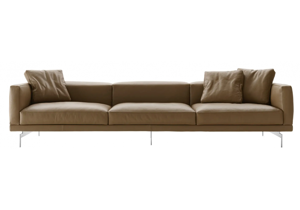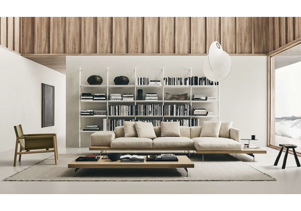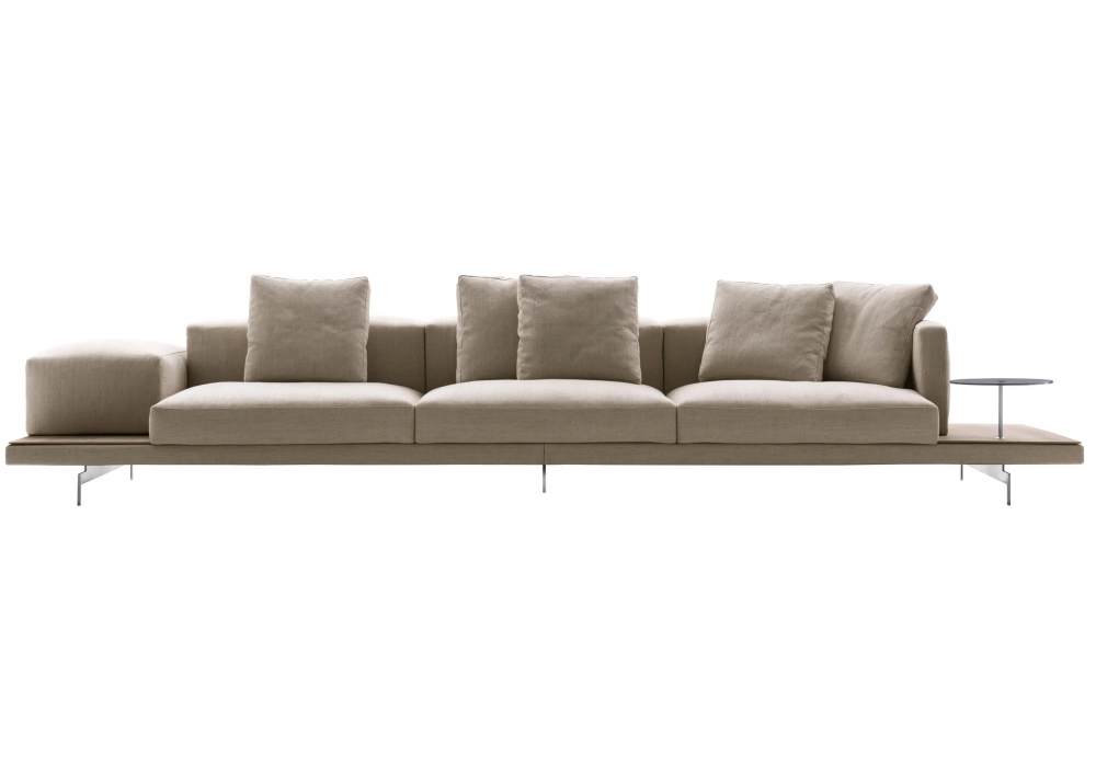 Dock Alto firmato da Piero Lissoni per B&B Italia è un divano modulare con rivestimento disponibile in tessuto o pelle e gambe in acciaio. Base rivestita o in diverse finiture di legno. Tavolini aggiuntivi con piano in vetro e struttura realizzata in acciaio. (Da ordinare separatamente). Disponibile in diversi modelli.