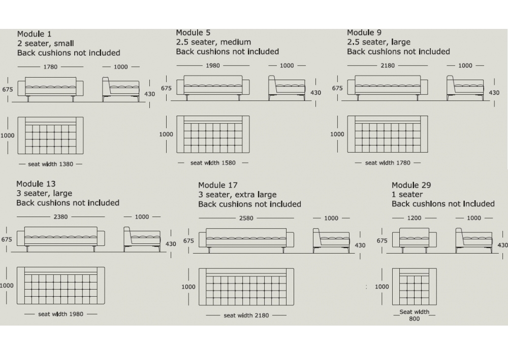 Campo firmato da Lars Wendelbo per Wendelbo è un divano con gambe in alluminio verniciato a polvere nero, schienale in piuma e imbottitura in sciuma ad alta resilienza. Disponibile in diversi modelli. Cuscino schienale non incluso.