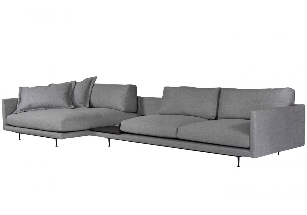 Maho firmato da 365 North per wendelbo è un divano con gambe in acciaio verniciato a polvere nero e imbottitura in piumino. Rivestimento disponibile in pelle o tessuto.