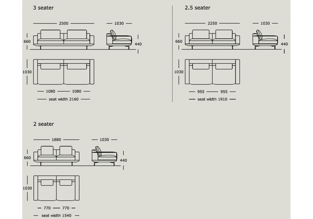 | Dimensioni | 250 x 103 x H 66 cm; 225 x 103 x H 66 cm; 188 x 103 x H 66 cm. |