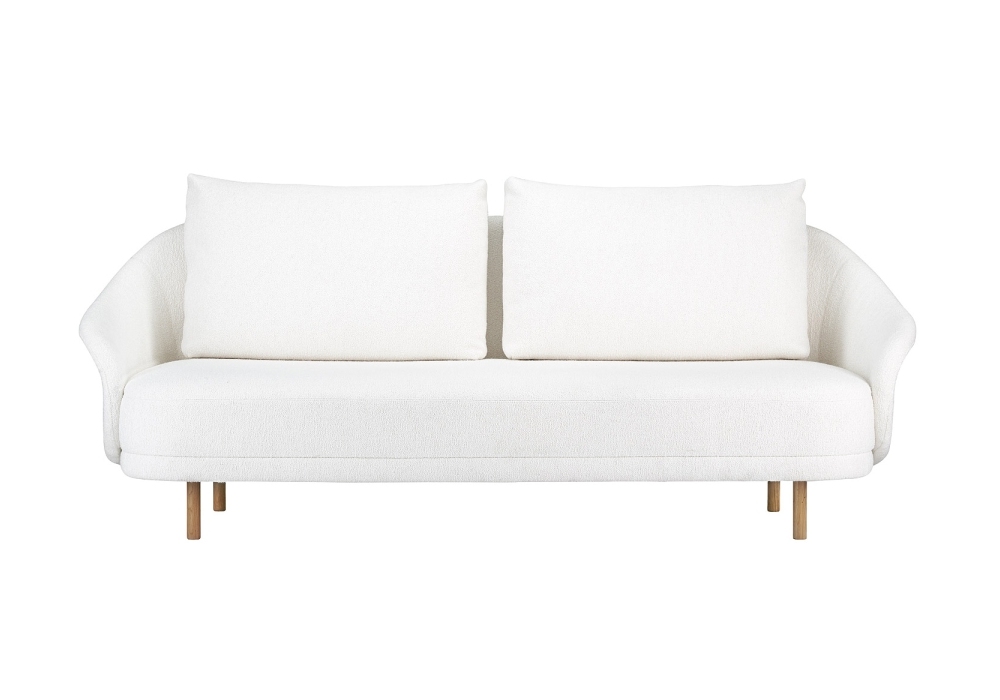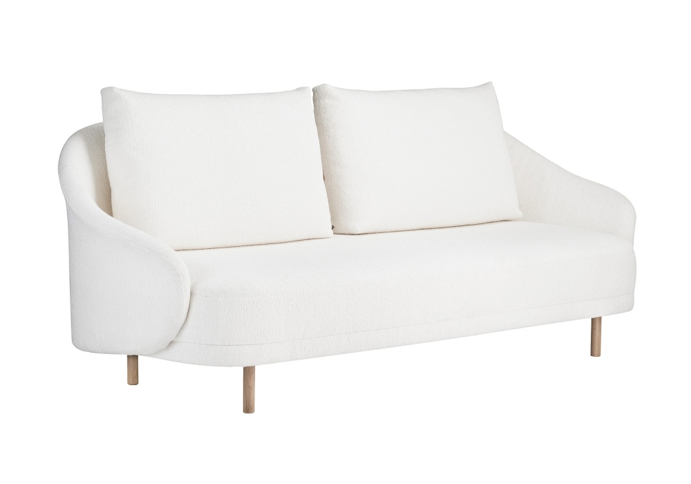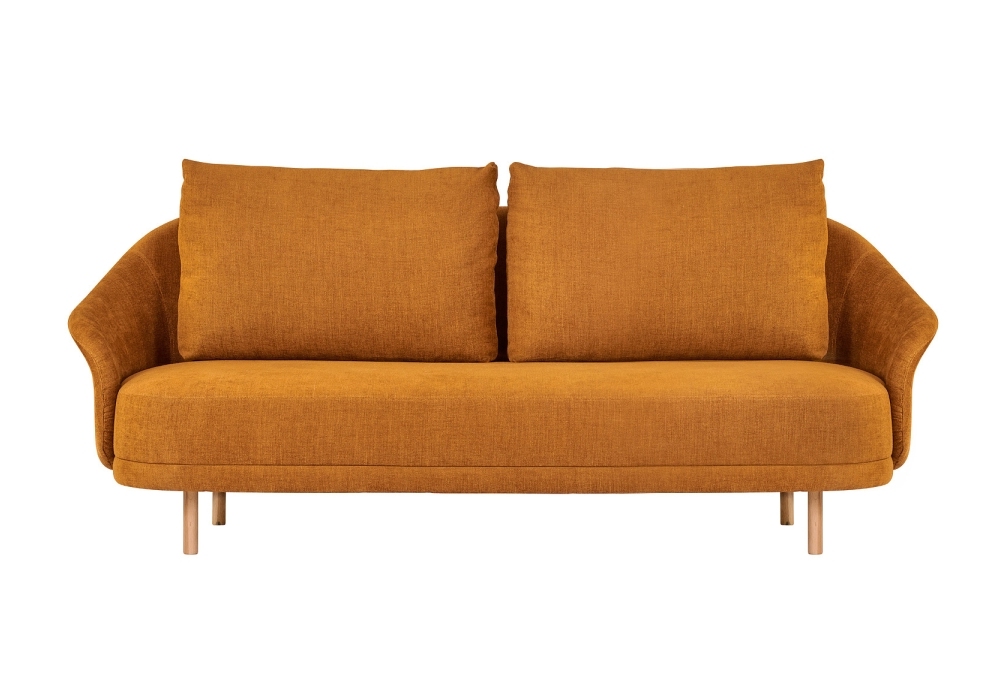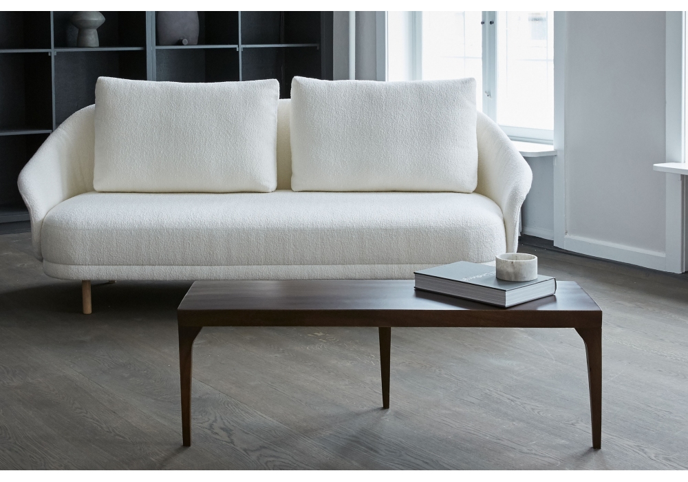 New Wave firmata da Kristian Sofus Hansen e Tommy Hyldahl per Norr11 è un divano con struttura in legno di faggio. Disponibile in due sedute con gambe in legno nelle diverse finiture o in ottone e rivestimento in tessuto.