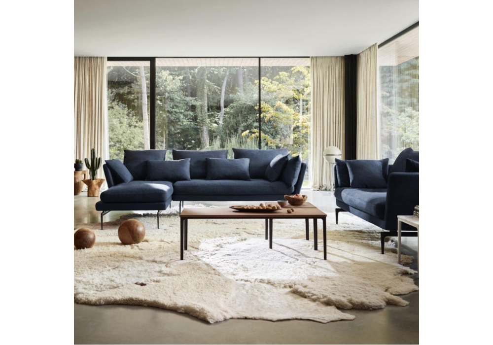 Suita 3 Posti firmato da Antonio Citterio per Vitra è un divano a 3 posti disponibile nella versione con cuscini classici o con cuscini schienali a punta. Opzionali la mensola nel retro dello schienale e il poggiatesta alto. Il divano ha una base in alluminio pressofuso con finitura lucida o verniciata a polvere, la struttura è rivestita in tessuto o pelle sfoderabile.