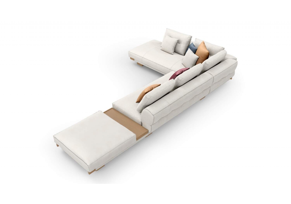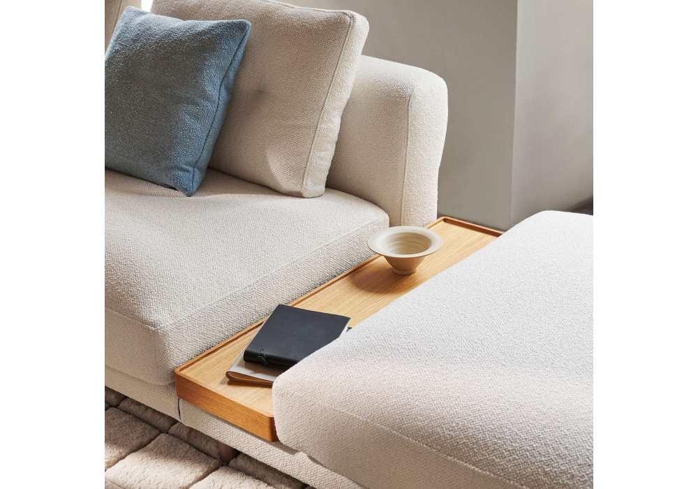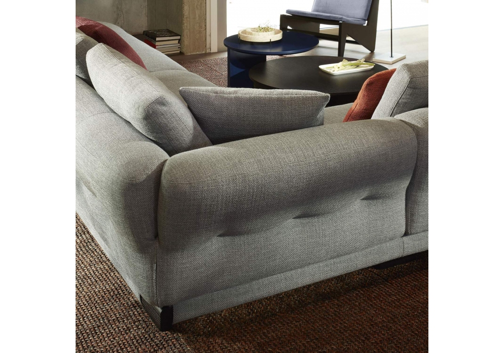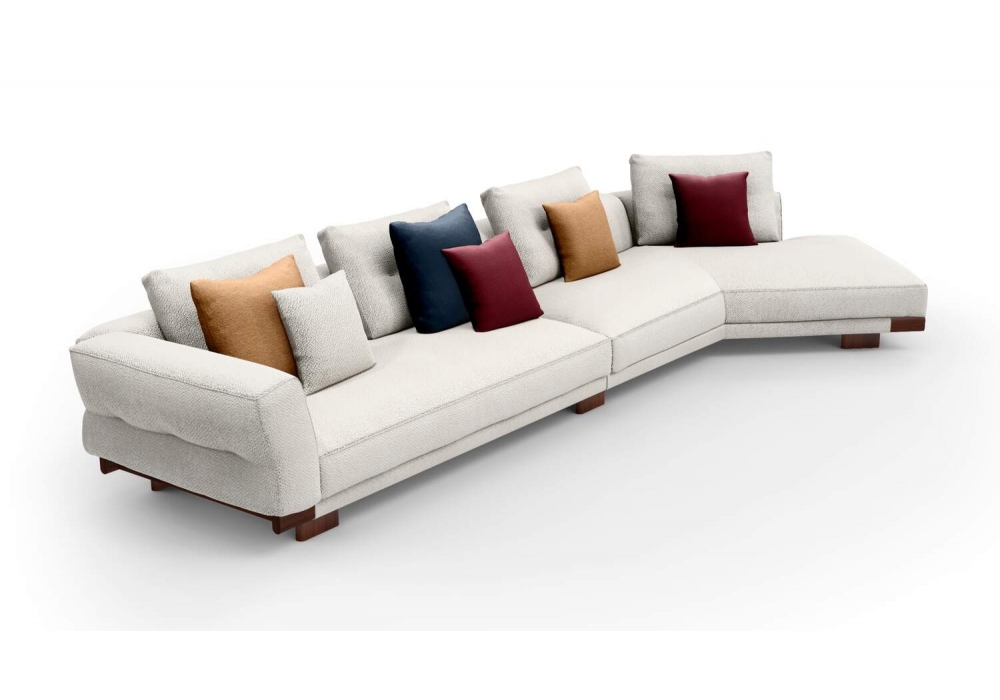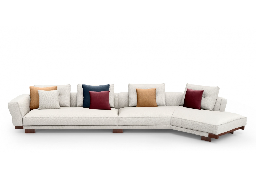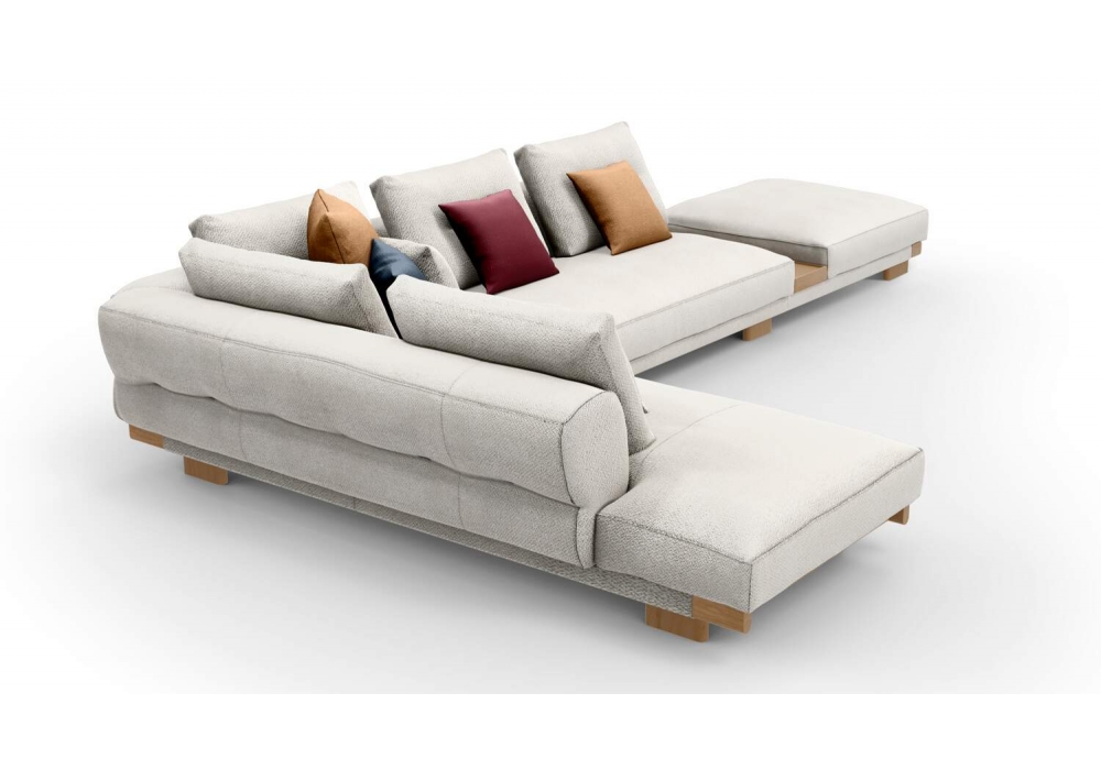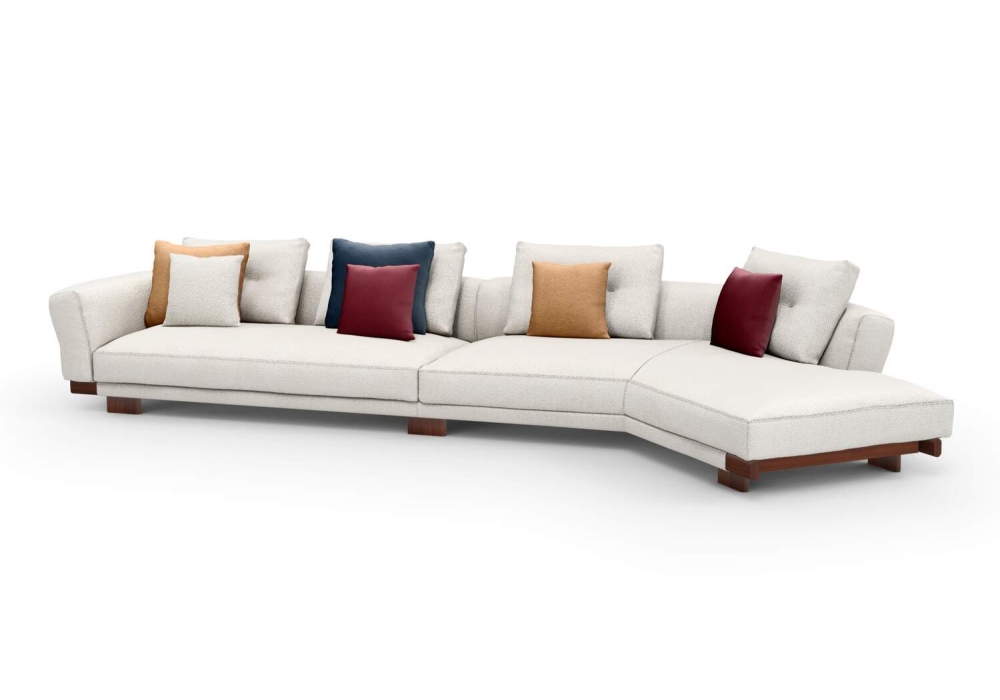 556 Sengu firmato da Patricia Urquiola per Cassina è un divano con struttura in acciaio rifinito con travi in legno e cuscini imbottiti con fibra riciclata disponibile in diverse configurazioni. Linee geometriche semplici ed è molto confortevole.