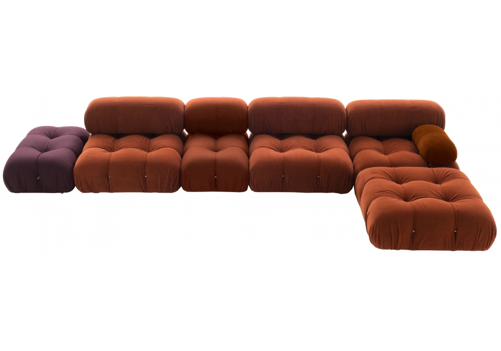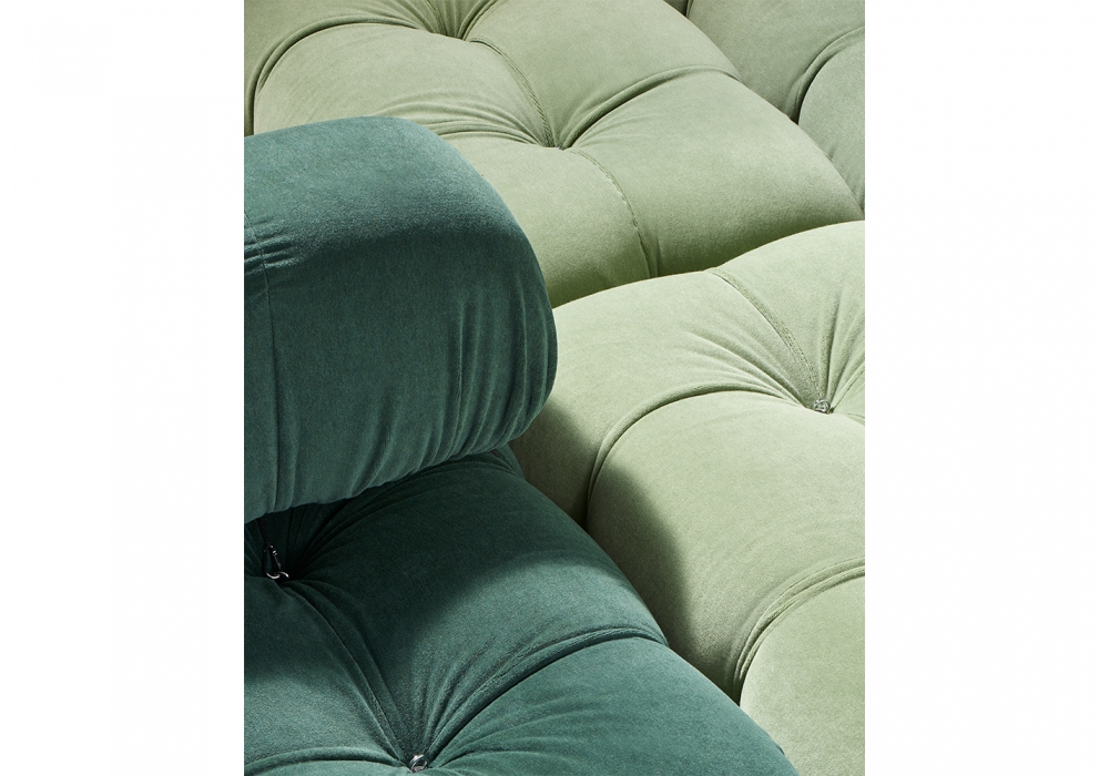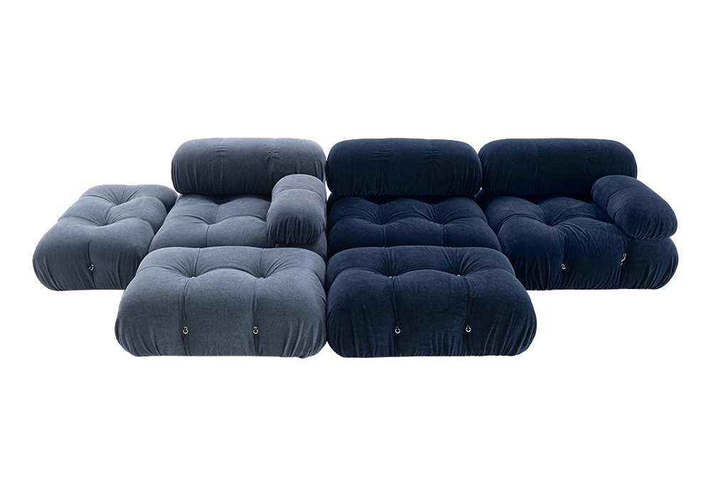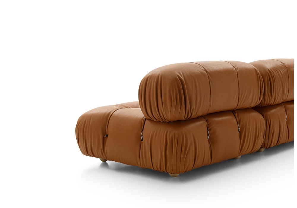 Camaleonda firmato da Mario Bellini per B&B Italia è un divano modulare con piedini in faggio naturale. Rivestimento in differenti tessuti o pelli con elementi metallici in acciaio cromato lucido.