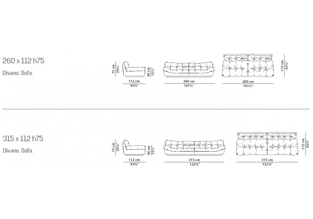 | Dimensioni | 260 x 112 x H 75 cm; 315 x 112 x H 75 cm. |