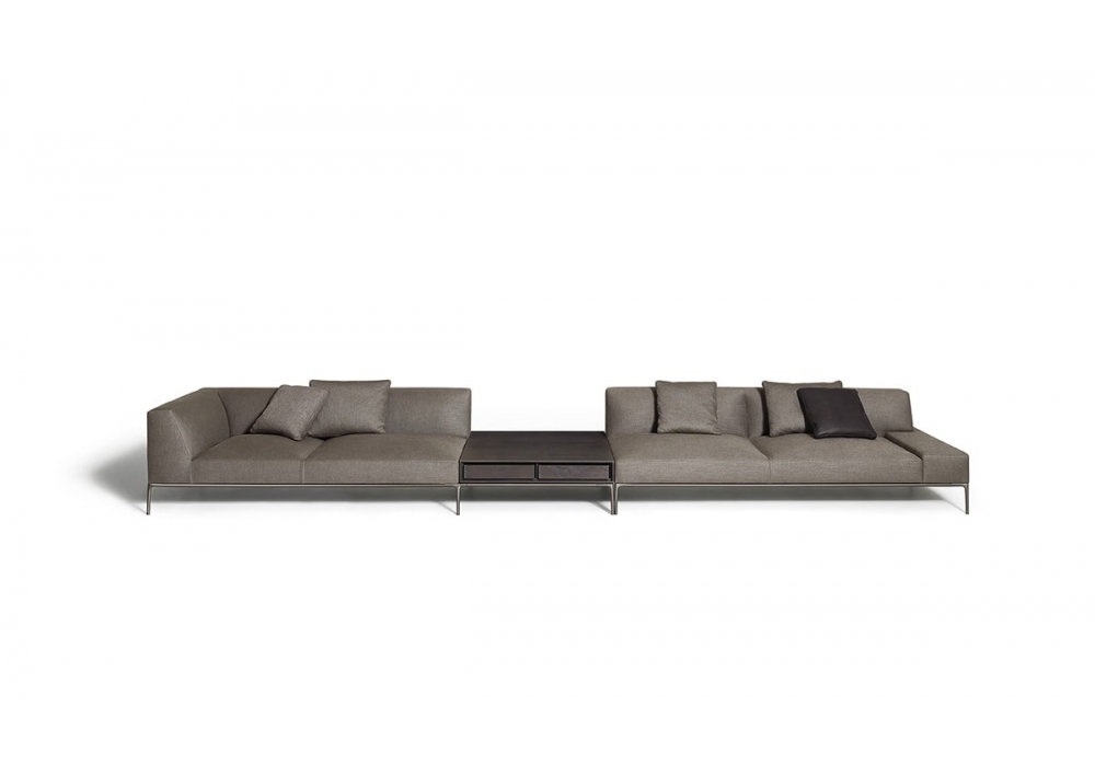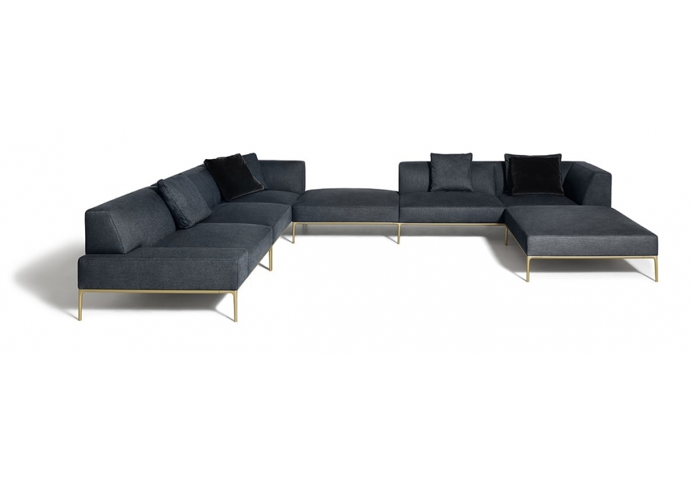 Horizontal firmato da Time & Style per DePadova è un divano due o più posti o modulare realizzato con piedini e traversi in alluminio verniciato ottone o ottone brunito. Rivestimento sfoderabile in tessuto o fisso in pelle. Disponibile in diverse finiture e dimensioni.