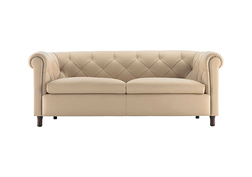 Morbidezza e comfort sono le principali caratteristiche di questa collezione di sedute, oltre al suo design che suggerisce una sottile chiusura dei braccioli verso l'interno di ogni elemento.Il fusto principale è in legno di faggio, l’imbottitura è in poliuretano espanso e ovatta poliestere, mentre i cuscini sono in poliuretano espanso e piuma.