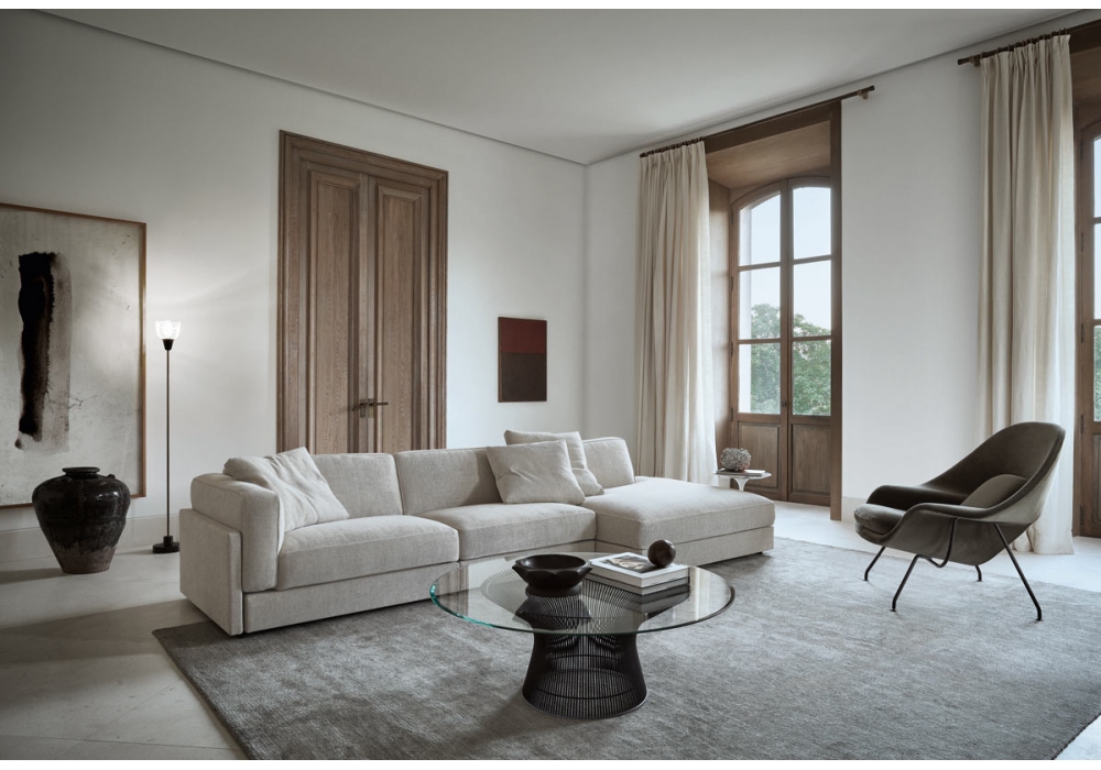 Gould firmato da Piero Lissoni per Knoll è un sistema di divani. I moduli del divano sono realizzati con struttura in metallo con annessi pannelli in poliuretano espanso rivestiti in tessuto, pelle o legno di castagno. Cuscini con anima in espanso variabile, imbottitura in piuma e rivestimento in tessuto o pelle.