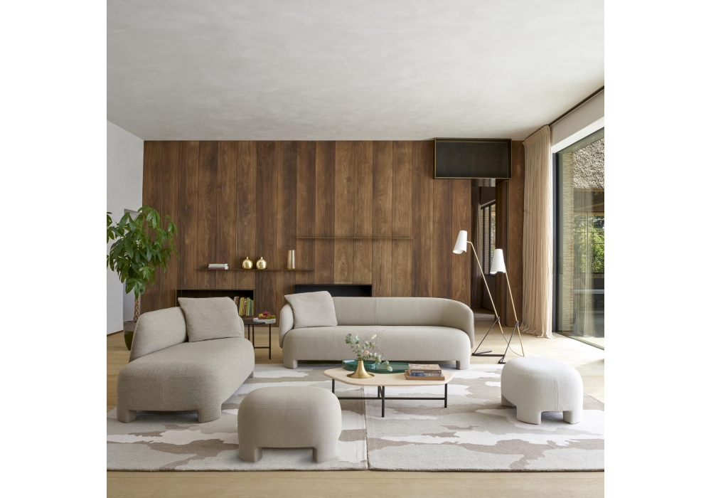 Taru firmato da Sebastian Herkner per Ligne Roset è un divano completamente rivestito con seduta e schienale interno rivestiti in tessuto; esterno dello schienale in tessuto o pelle. A richiesta, Taru è disponibile completamente rivestito in pelle come l'esterno schienale.