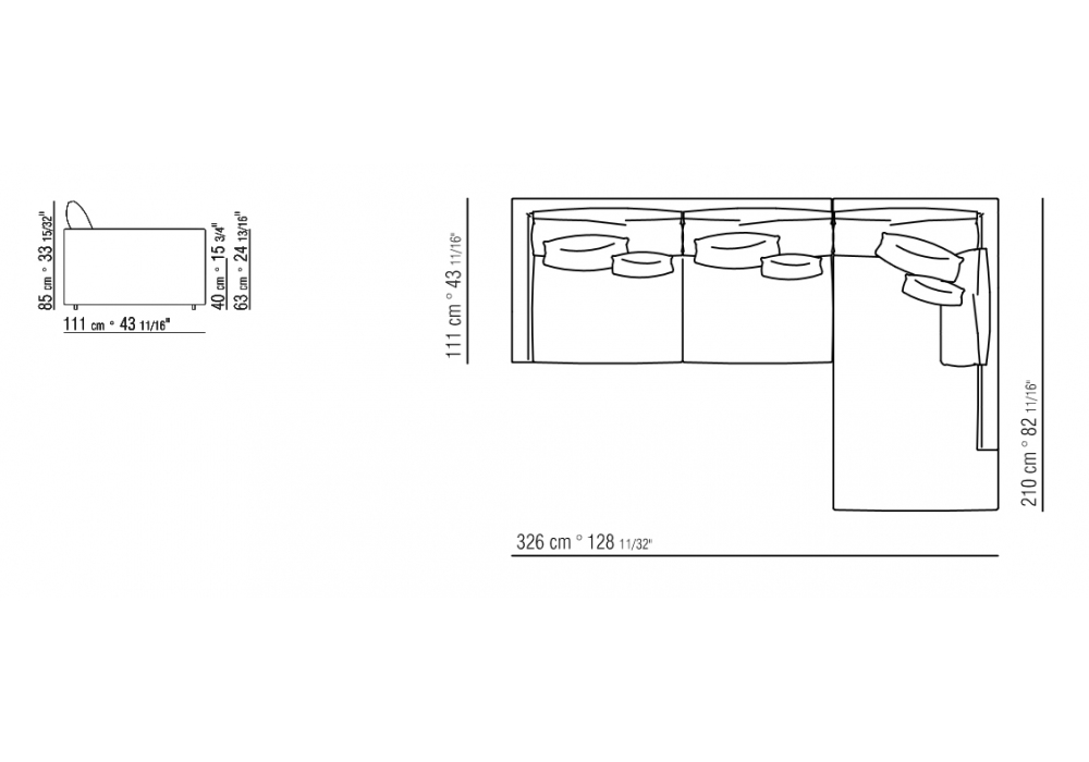 | Dimensioni | • 180 x 95 x H 85 cm; • 230 x 95 x H 85 cm; • 270 x 95 x H 85 cm; • 326 x 210 x H 85 cm; • 326 x 310 x H 85 cm |