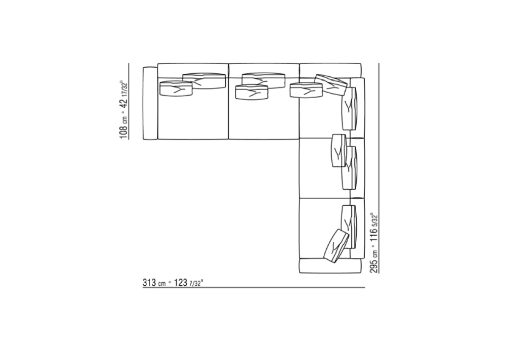 | Dimensioni | • 340 x 108 x H 72 cm; • 313 x 295 x H 72 cm; • 413 x 290 x H 72 cm |