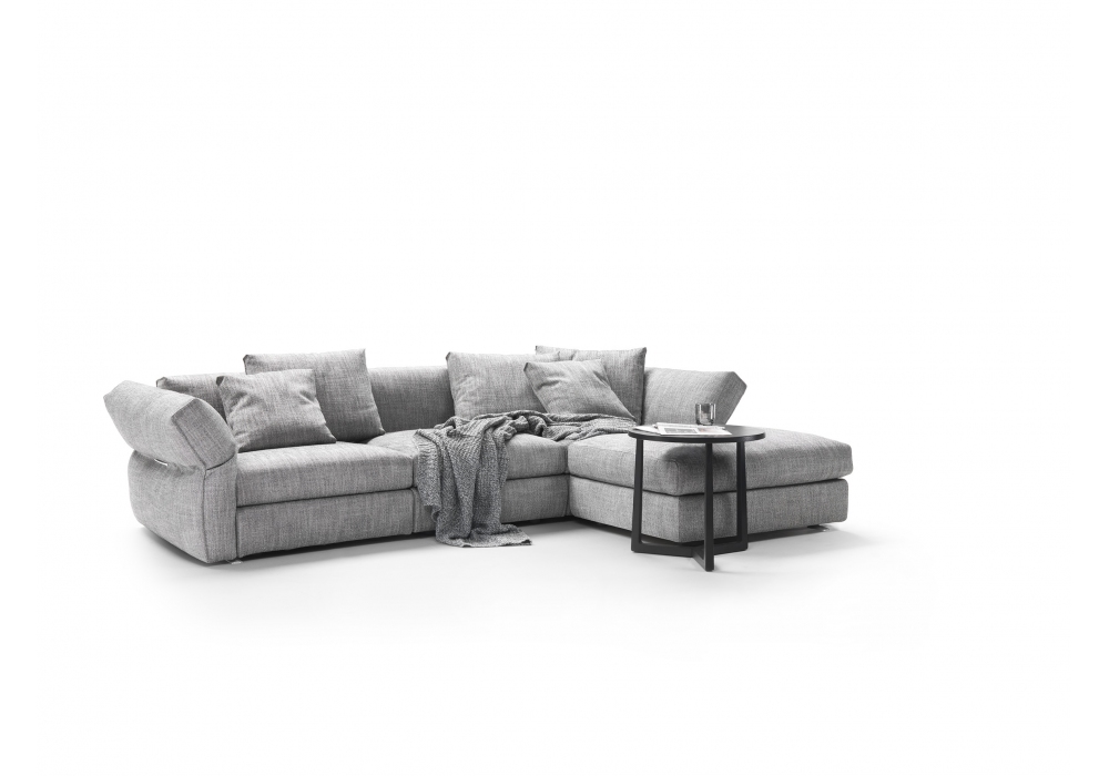 Newbridge firmato da Carlo Colombo per Flexform è un divano modulare composto da moduli realizzati con cuscino di seduta imbottito in materiale indeformabile o poliuretano espanso e fibra di poliestere e piuma d'oca; struttura in metallo imbottita in poliuretano; schienale e bracciolo con bottone in metallo e piedini in metallo. Il divano è rivestito in tessuto o pelle.
