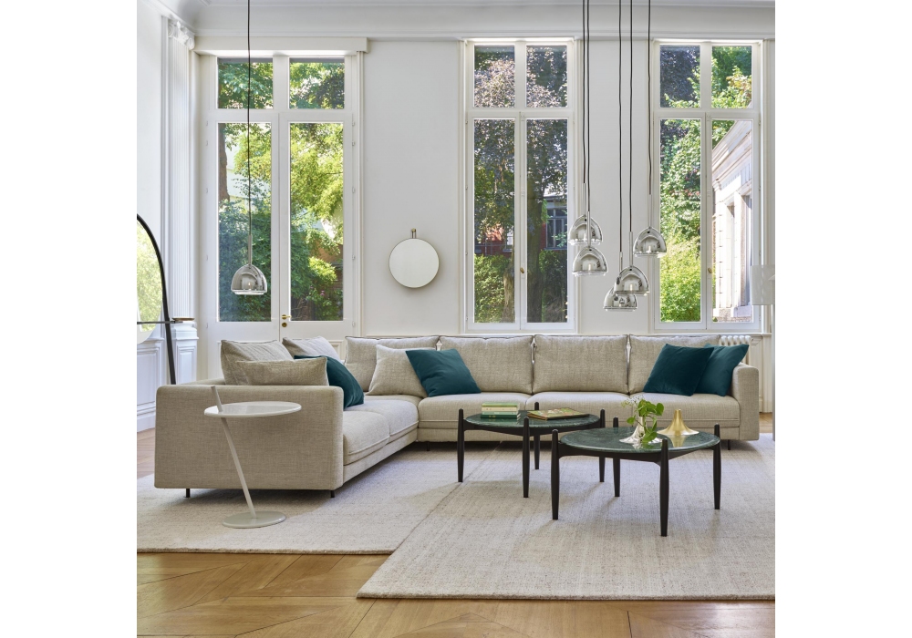 Enki firmato da Evangelos Vasileiou per Ligne Roset è un divano con imbottitura in poliuretano espanso Bultex ad alta resilienza. Rivestimento disponibile in tessuto o pelle. Piedini tondi Ø 20 mm in acciaio laccato nero opaco. Scelta di 2 altezze: H 10 cm o H 13 cm. Disponibile in diversi modelli.