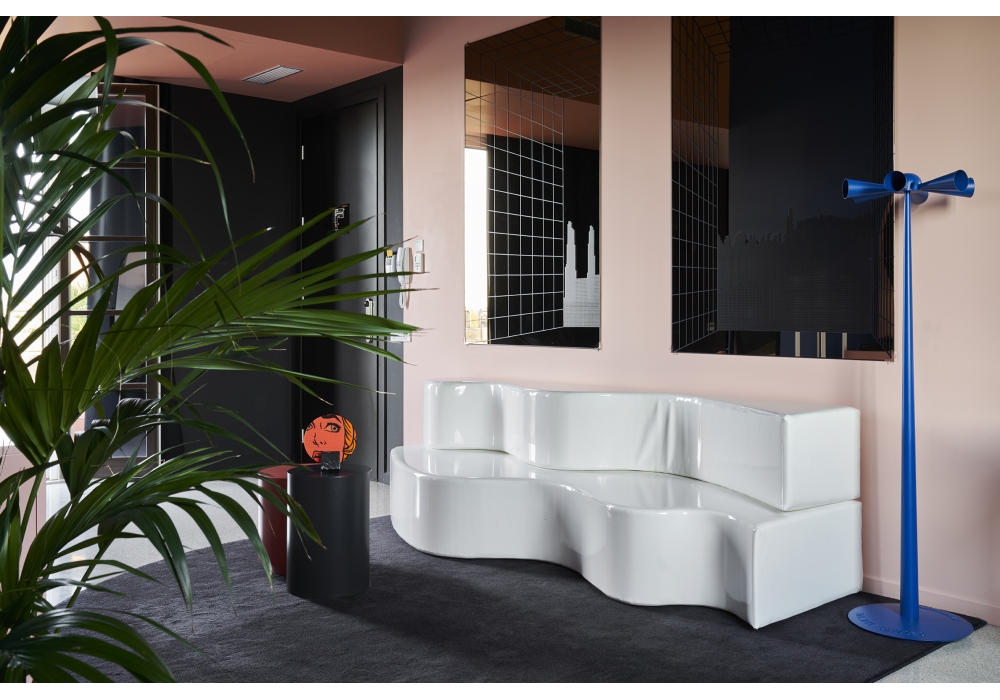 Superonda firmato da Archizoom Associati per Poltronova è un divano componibile costituito da due onde, ricavate da un blocco di poliuretano segato in due parti da un taglio a “S”, che s’incastrano e si sovrappongono, formando differenti configurazioni. Rivestimento in PVC lucido. Disponibile in diverse finiture.
