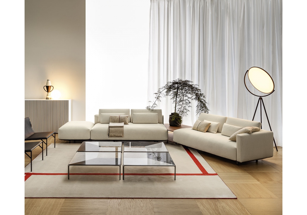 Billie firmato da Ludovica & Roberto Palomba per Casamania & Horm è un divano realizzato con telaio e piedini in alluminio, cuscini in poliuretano espanso a quote differenziate ad altissima resilienza. cuscini poggiano su cinghie elastiche ad alta componente di caucciù innestate nel telaio di alluminio. Disponibile in diverse composizioni.