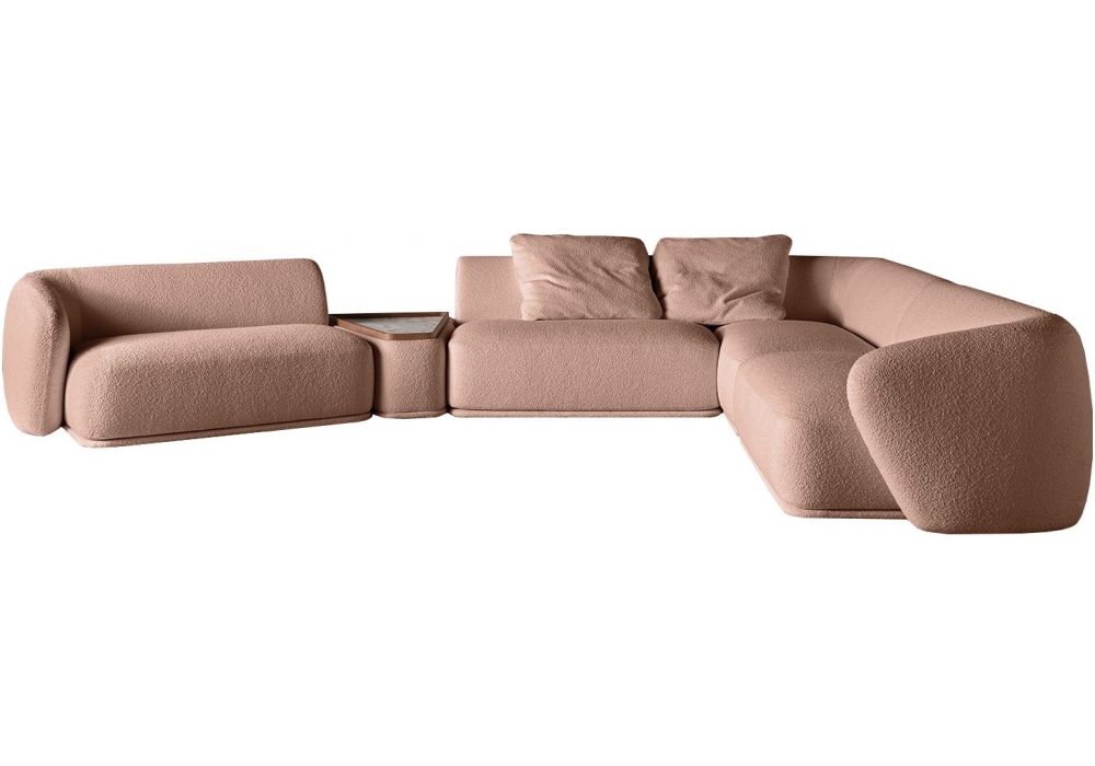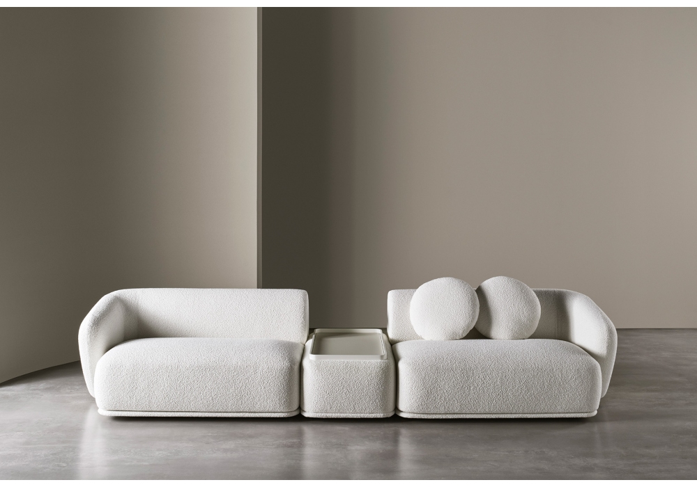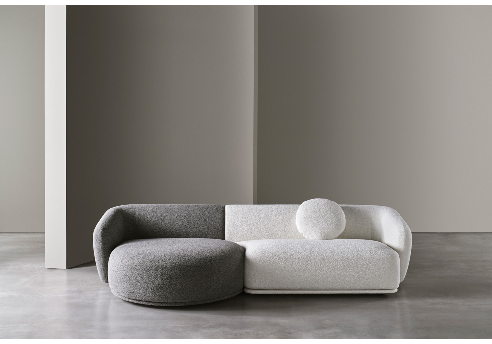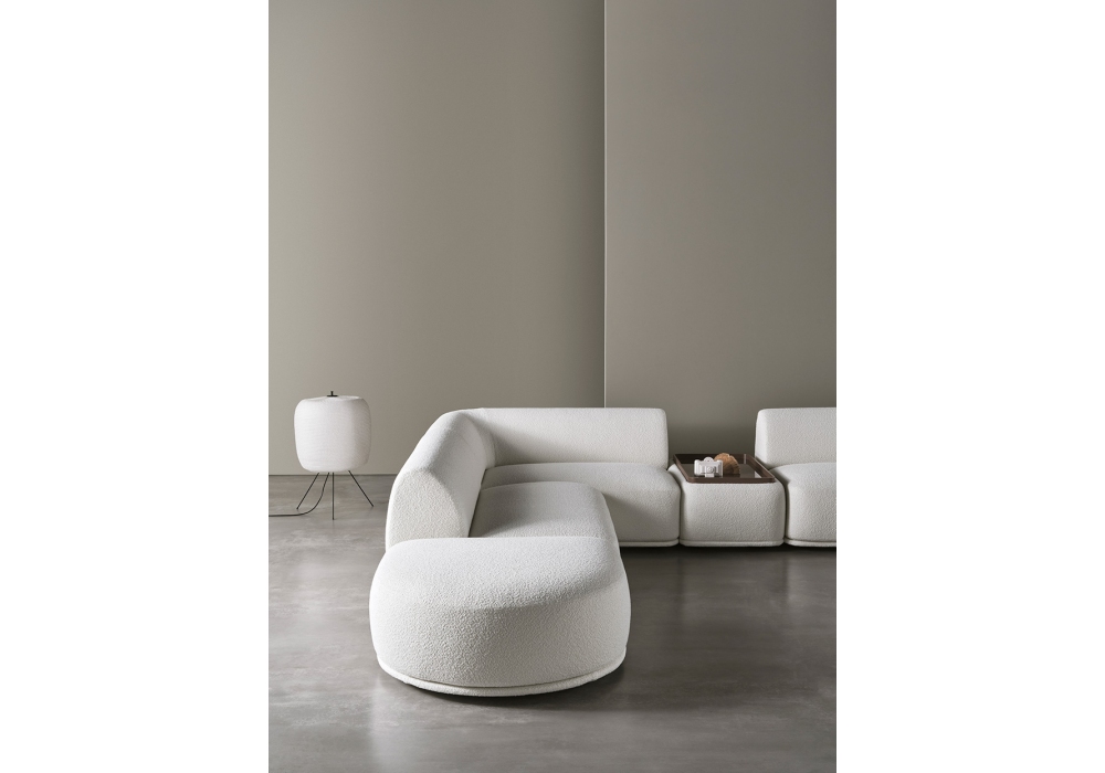 René firmato da Andrea Parisio per Meridiani è un divano con sedute e schienali arrotondati, disponibile nella configurazione modulare o nella versione fissa, dritta e curva. È composta da vari elementi, semicircolari, trapezoidali, tondi o rettangolari e può anche supportare vassoi disponibili in diverse finiture.