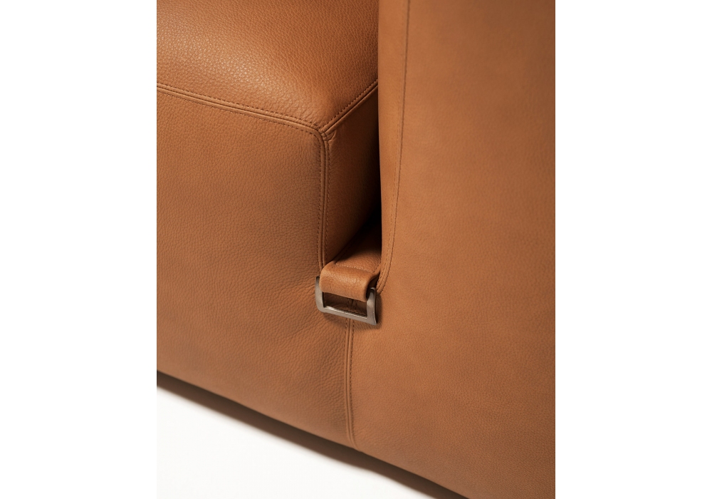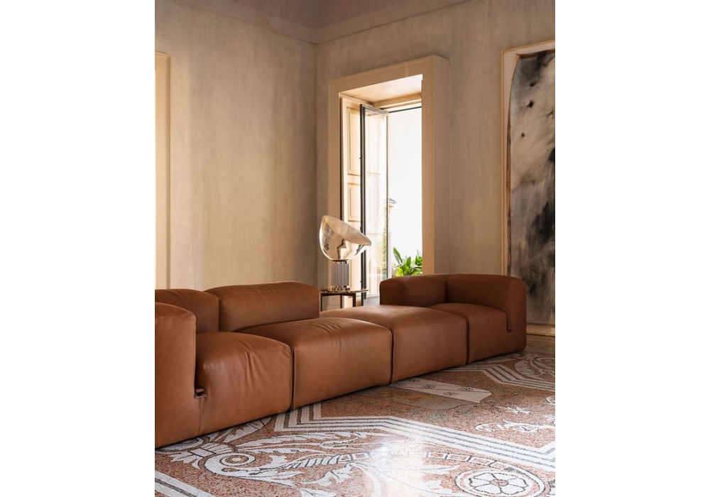 Le Mura firmato da Mario Bellini è un divano modulare con rivestimento sfoderabile, disponibile in diversi tessuti e finiture. Fibbie e cerniere in metallo, in vari colori.