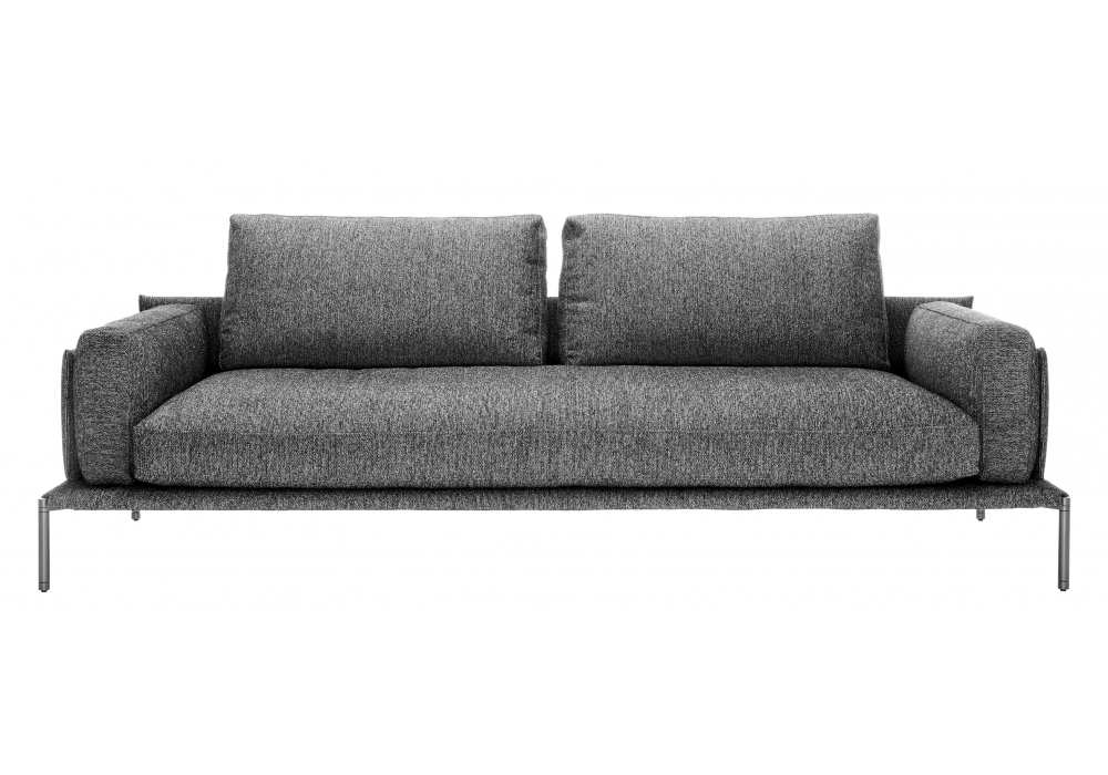 1345 Noah firmato da Damian Williamson per Zanotta è un divano con piedini in acciaio nichelsatinato lucido nero oppure verniciato colore grafite. Molleggio su nastri elastici, cuscino seduta unico in poliuretano a quote differenziate /fiocchi di poliestere e cuscino schienale in piuma d’oca. Rivestimento esterno sfilabile in stoffa o in pelle. I pannelli perimetrali sono rivestiti nella stessa stoffa o pelle dei cuscini.
