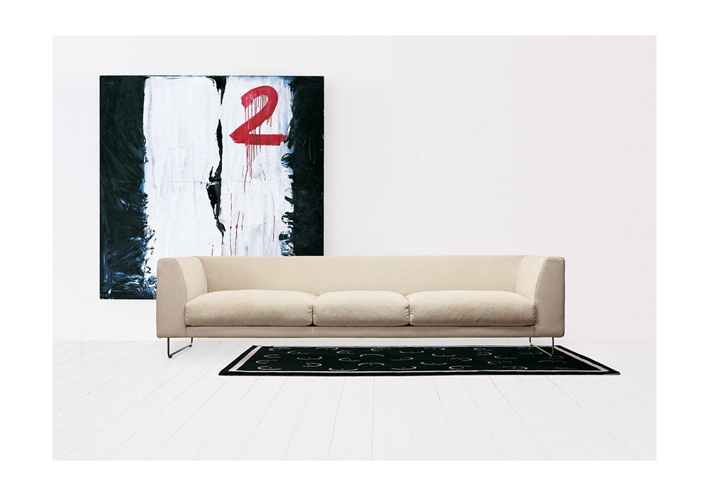Elan firmato da Jasper Morrison per Cappellini è un divano due posti, tre posti o modulare realizzato con rivestimento in tessuto o in pelle, imbottitura in poliuretano espanso a quote differenziate e fibra, struttura in legno e base in acciaio inox o verniciata opaco.