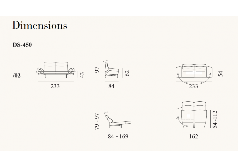 DS-450 firmato da Bart Van der Heyden & de Sede Design Team per De Sede è un divano con struttura in metallo con funzione del bracciolo con giunti a cricchetto regolabili manualmente. Il bracciolo diventa poggiapiedi (carico massimo 50 kg). Inclinazione dello schienale con molla a gas regolabile in continuo. Disponibile con rivestimento in pelle in differenti finiture.