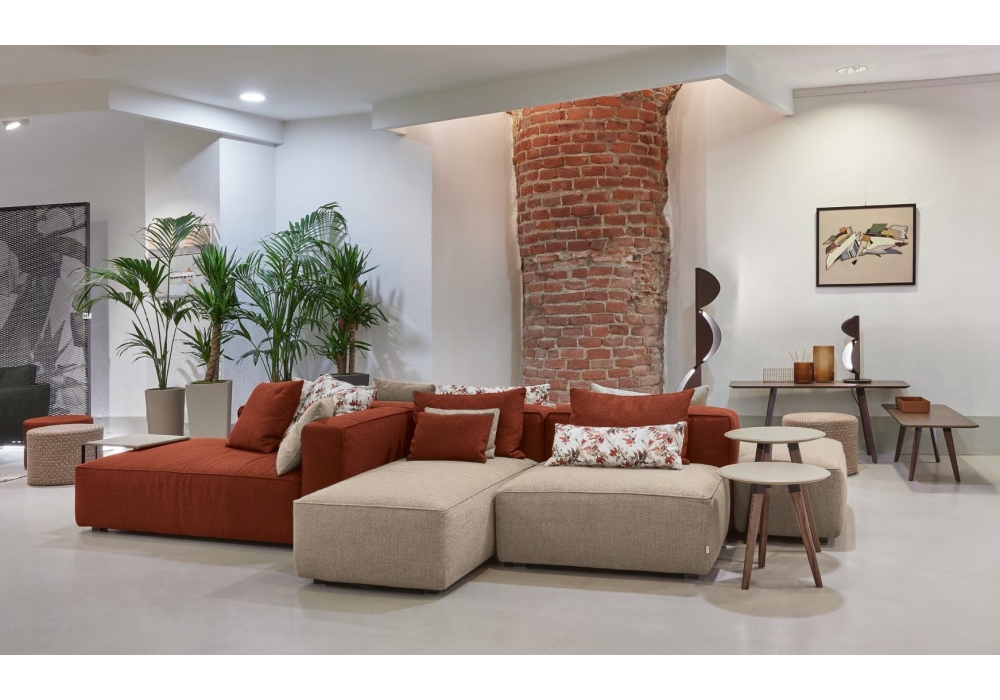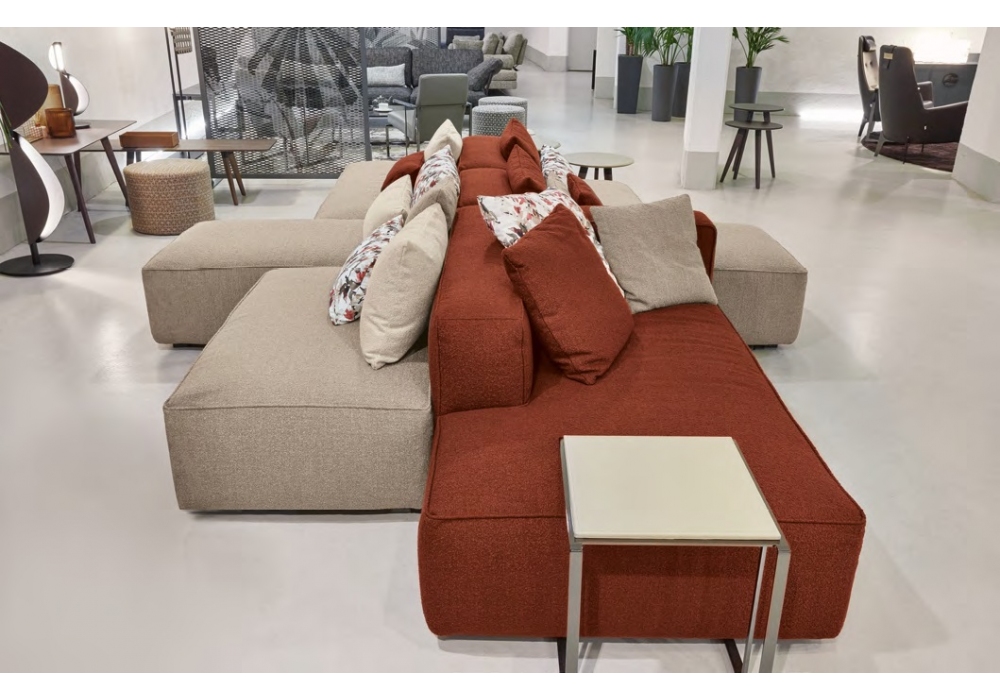 Cubotto firmato da Dema è un divano modulare realizzato con struttura interna in multistrato marino, cuscini seduta e schienale in poliuretano espanso a quote differenziate e falda termolegata. Cuscini volanti in piuma d’oca certificata e garantita. Rivestimento in tessuto e pelle.