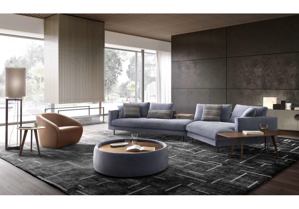 Easy firmato da Carlo Bimbi per Dema è un divano con struttura interna in massello di abete, cuscini seduta in poliuretano espanso a quote differenziate, con trapunta in piuma d’oca canalizzata. Piedi in metallo verniciato RAL 8022 e rivestimento in tessuto o in pelle.