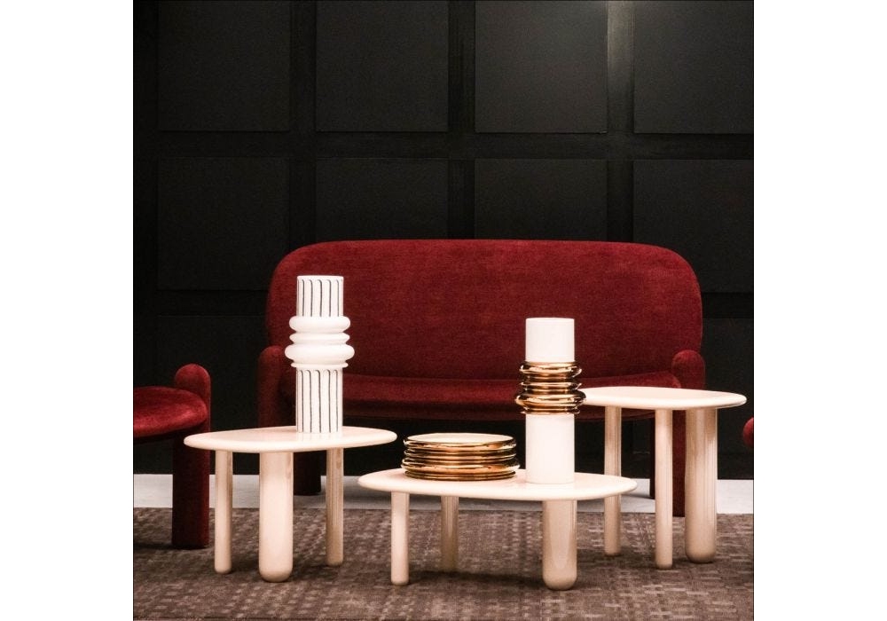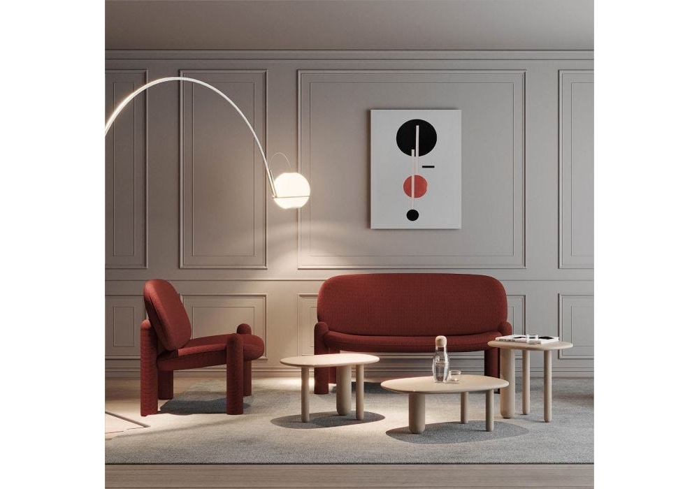 Tottori firmato da Kateryna Sokolova per Driade è un divano con struttura in poliuretano flessibile a media densità, piedini in PE per l'appoggio a terra. Il rivestimento è fisso con la possibilità di materiali differenti per le gambe rispetto a quelli di seduta e schienale. Uso solo interno.