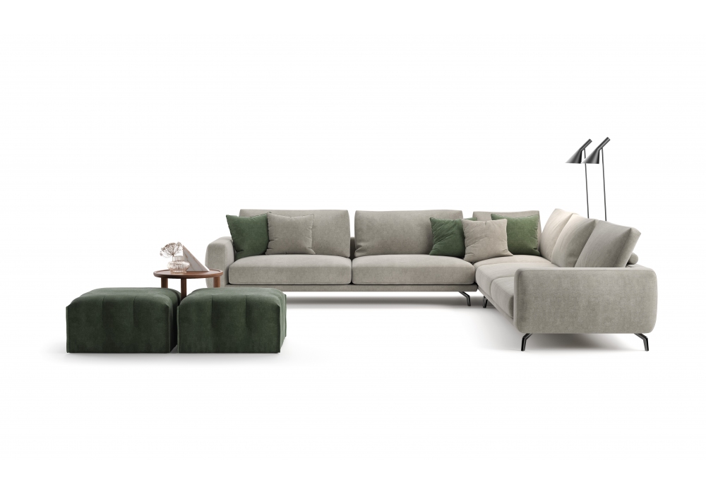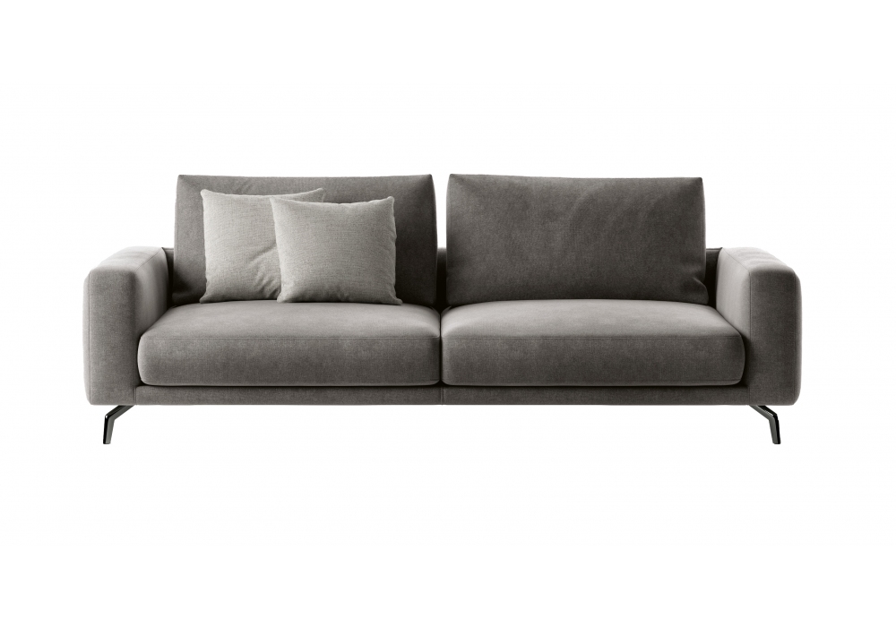 Lione firmato da Marac Lab per Marac è un divano con struttura in legno di abete e multistrato, con cinghie elastiche. Piedi in metallo cromato lucido o nichel nero. Rivestimento completamente sfoderabile in differenti finiture, tessuto o pelle. Disponibile in varie dimensioni.