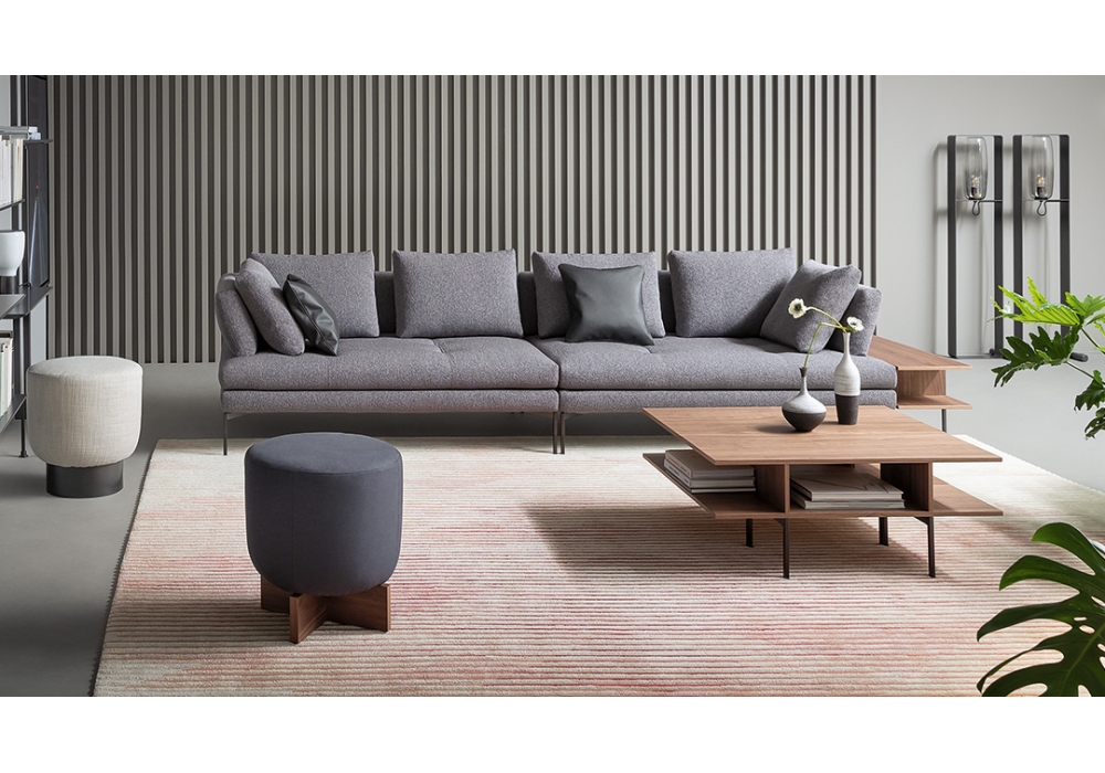 Aliante firmato da Sergio Bicego per Bonaldo è un divano modulare disponibile in diverse composizioni, con rivestimento sfoderabile in tessuto in vari colori. La base è in metallo verniciato in diverse finiture.