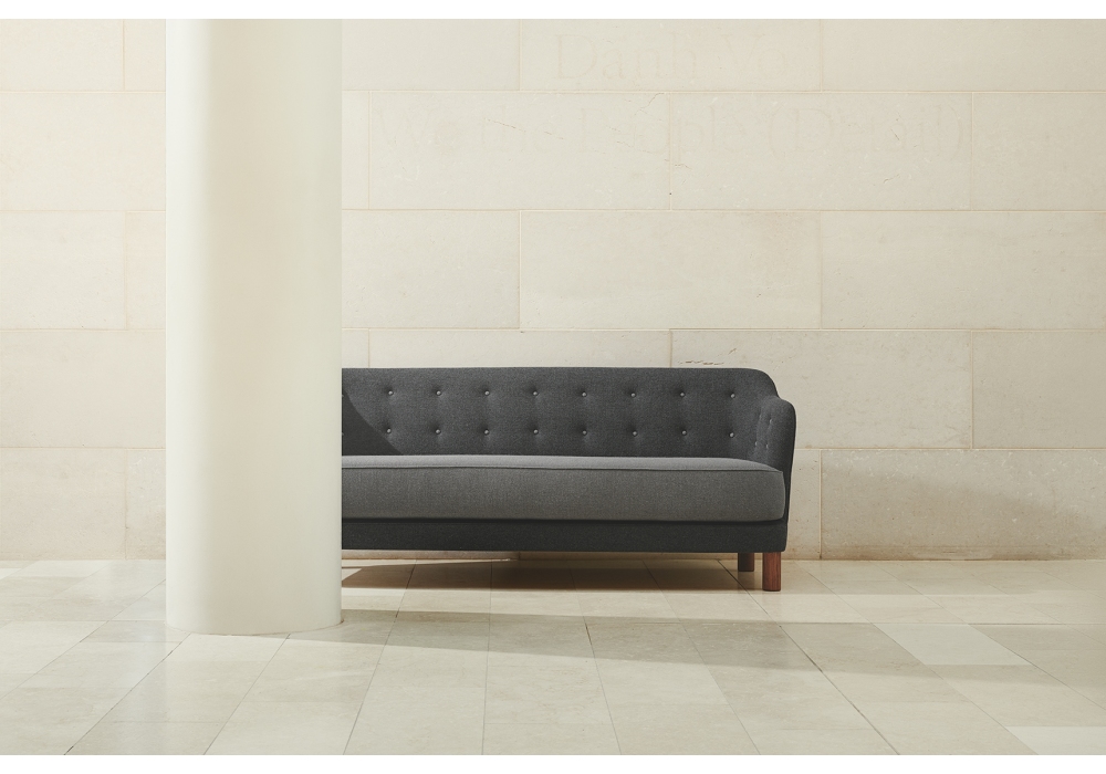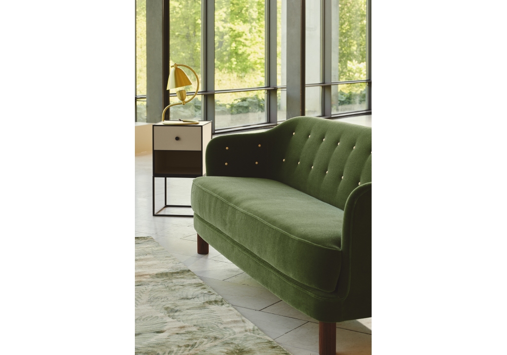 Constance firmato da Flemming Lassen per Audo Copenhagen è un divano realizzato in tessuto o finta pelle e gambe in legno di rovere naturale o noce. Disponibile in diversi rivestimenti.