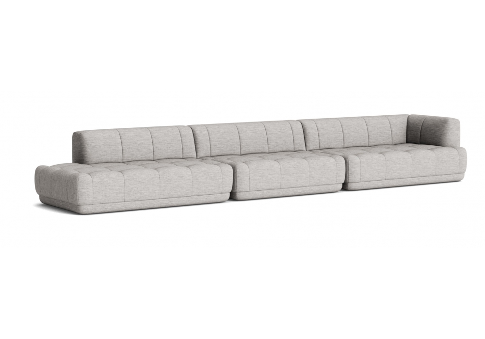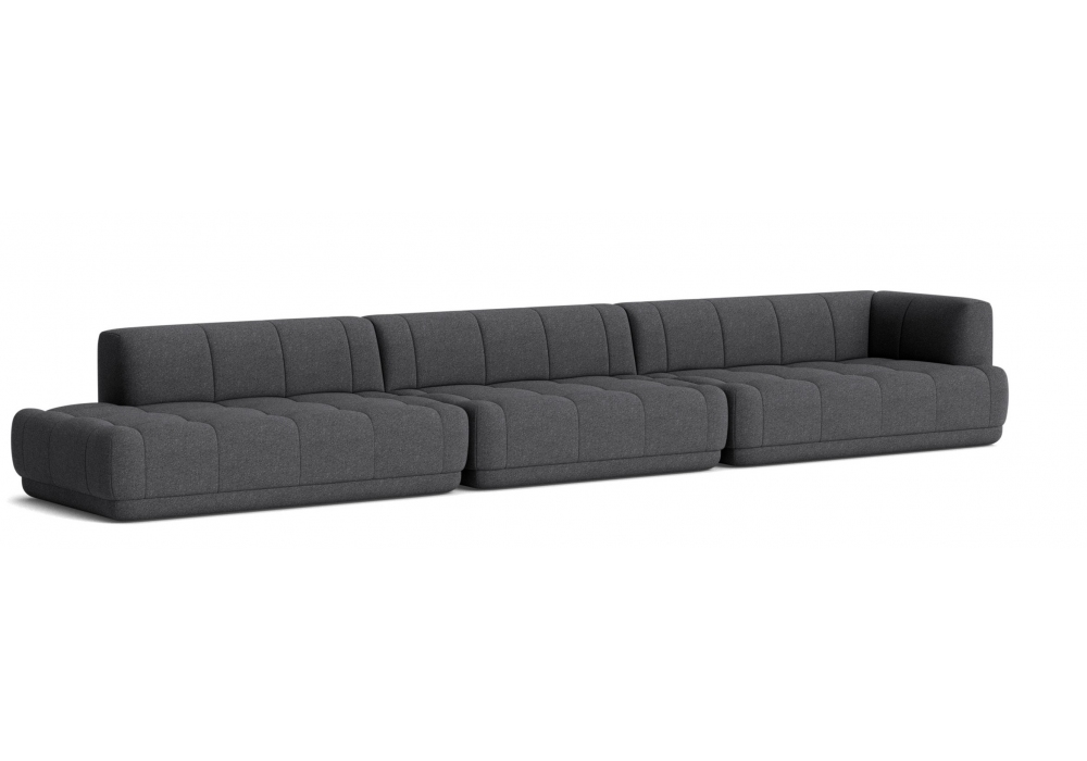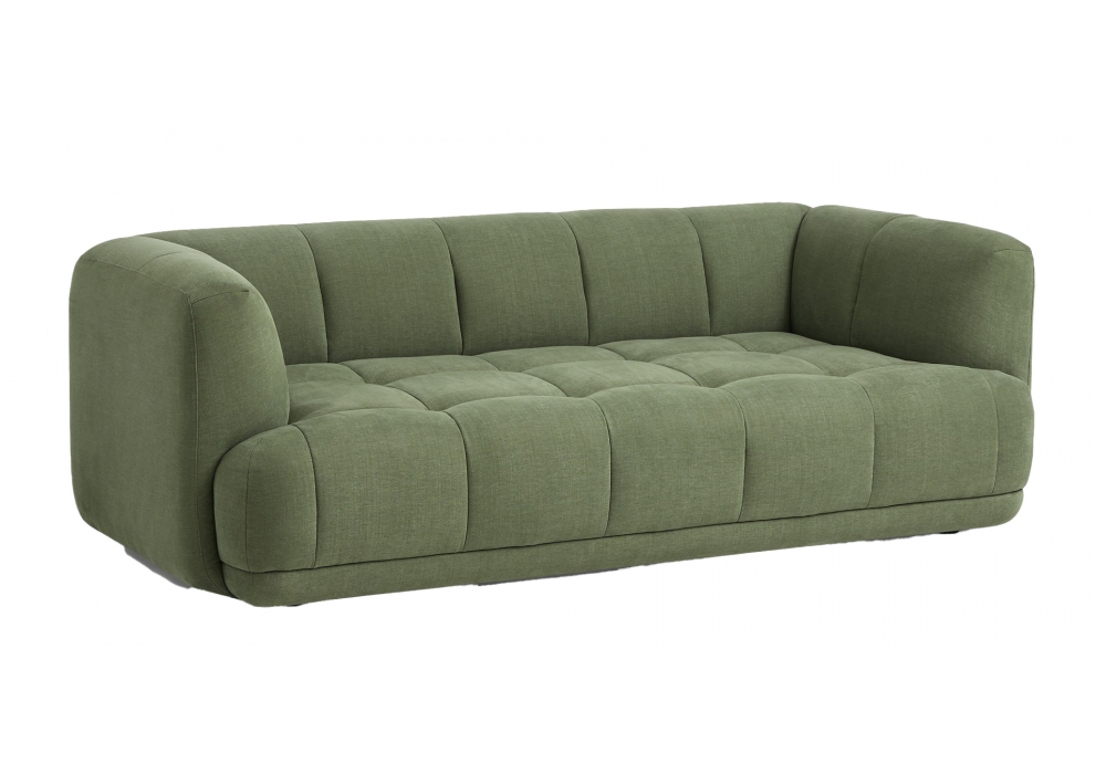 Quilton firmato da Doshi Levien per Hay è un divano componibile con rivestimento in tessuto o pelle e gambe in massello di faggio tinto nero. Disponibile anche nella versione con base a contrasto nero ed in differenti modelli e rivestimenti.