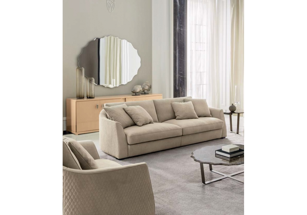 Basilio firmato da Opera Contemporary è un divano con imbottitura in piuma con inserto in gomma, piedini in legno di faggio e rivestimento non sfoderabile in pelle o in tessuto. Disponibile in 2 dimensioni.