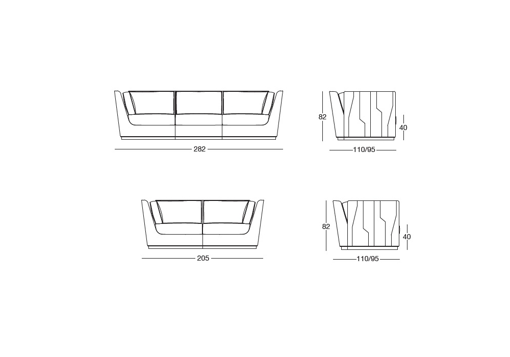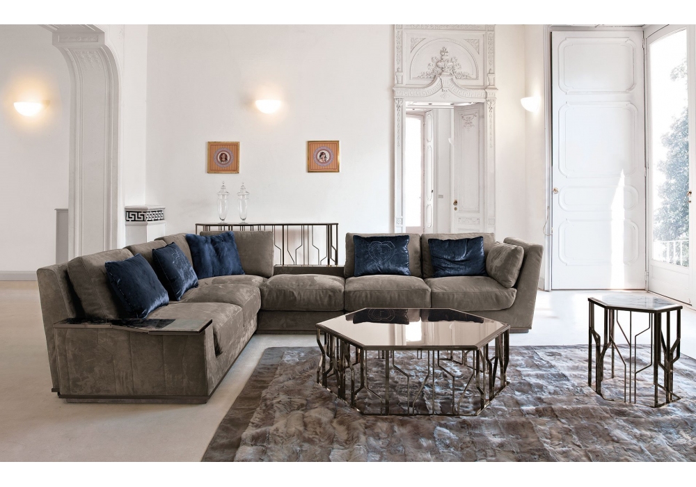 Nobu firmato da Giuseppe Iasparra per Longhi è un divano modulare con rivestimento realizzato in tessuto o pelle non sfoderabile con trapuntatura nella scocca esterna. Nella base sono presenti degli inserti in metallo in finitura lucida o opaca. Su richiesta i braccioli possono essere realizzati in metallo, marmo o specchio. Disponibile anche a profondità ridotta (95 cm).