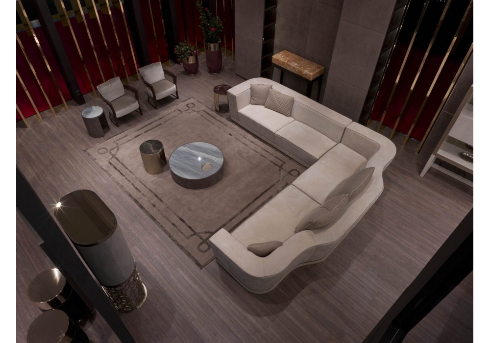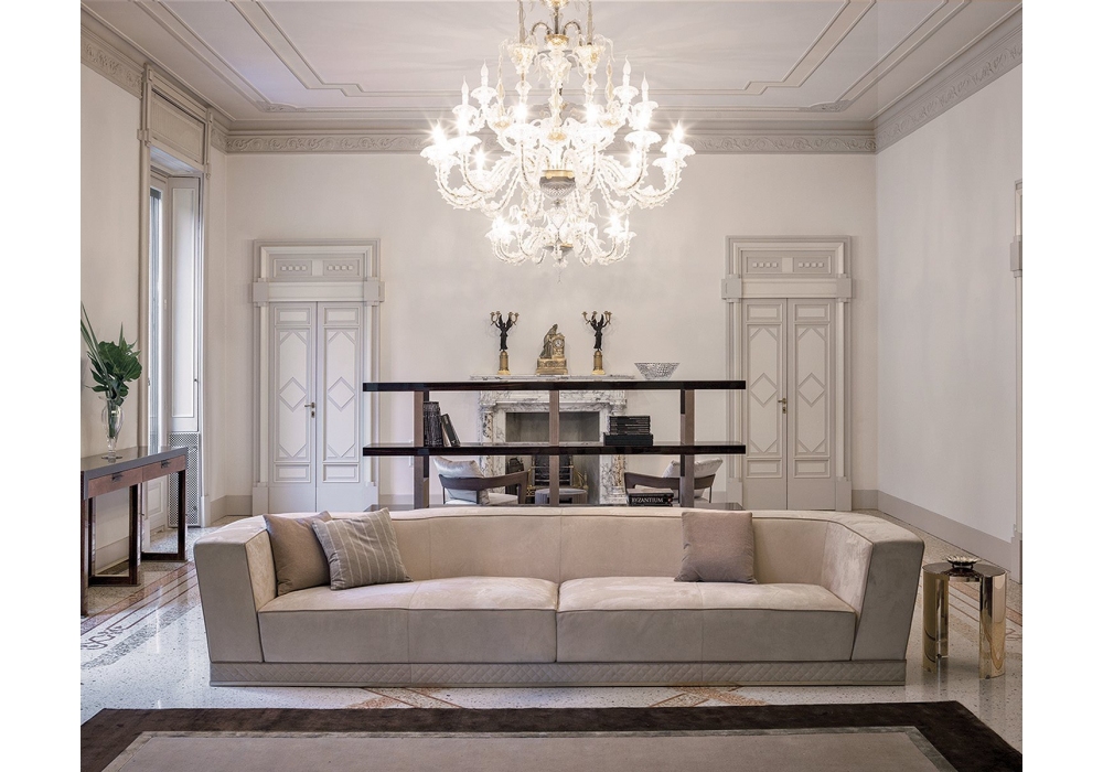 Welles firmato da Giuseppe Viganò per Longhi è un divano modulare con bordo inferiore in metallo cromato lucido o opaco con base con rivestimento liscio o trapuntato a rombi. Struttura rivestita in pelle o tessuto. Disponibile in differenti composizioni.