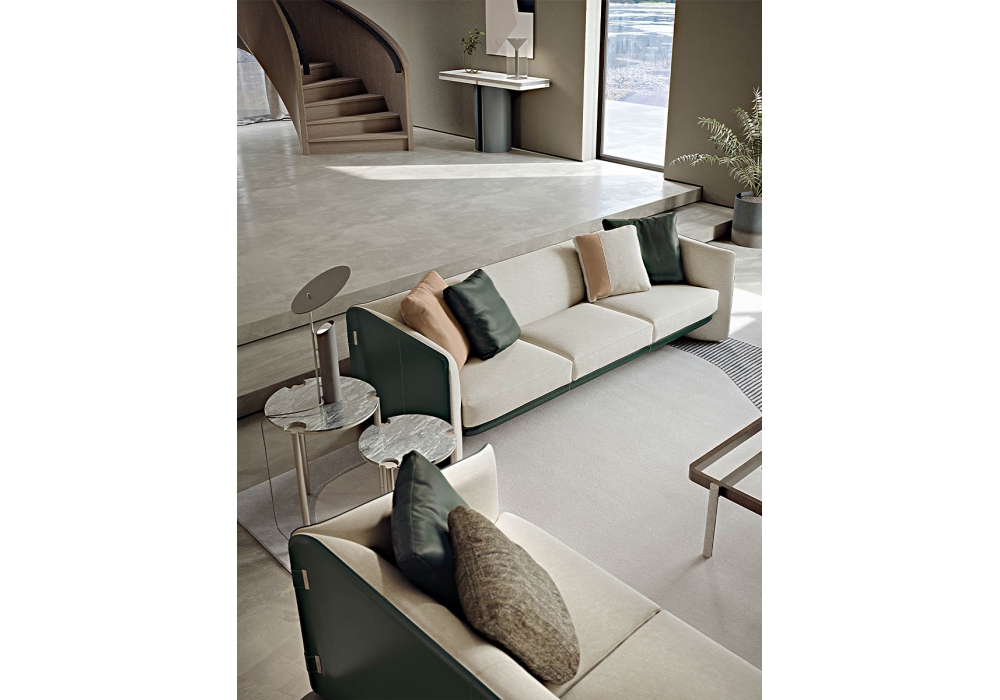 Blossom firmato da Andrea Bonini per Turri è un divano con struttura in legno massello e multistrato con Poliuretano espanso a quote differenziate e rivestimento in differenti tessuti o pelli. Parti metalliche in finitura cromata. Su richiesta è possibile combinare a contrasto i due materiali. Disponibile in diverse dimensioni.
