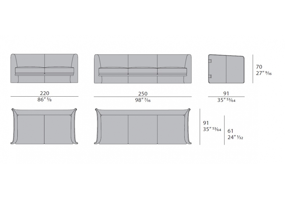 | Dimensioni | 220 x 91 x H 73 cm; 250 x 91 x H 73 cm. |