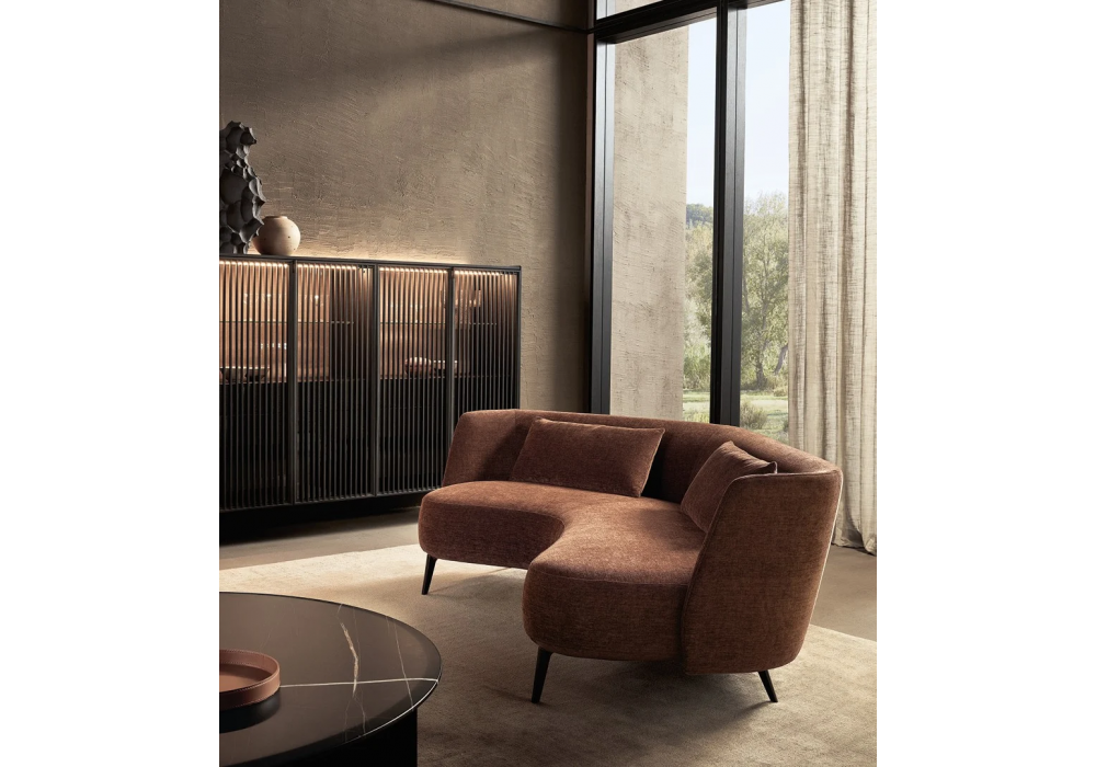 Sunday firmato da Flaviano Capriotti per Poliform è un divano con struttura in legno e derivati. Piedi in fusione di alluminio verniciato brown nickel opaco. Schienale e seduta in poliuretano a quote differenziate, prerivestimento in tela cotone. Cuscini opzionali in tela cotone e piuma. Rivestimento sfoderabile in tessuto o pelle.