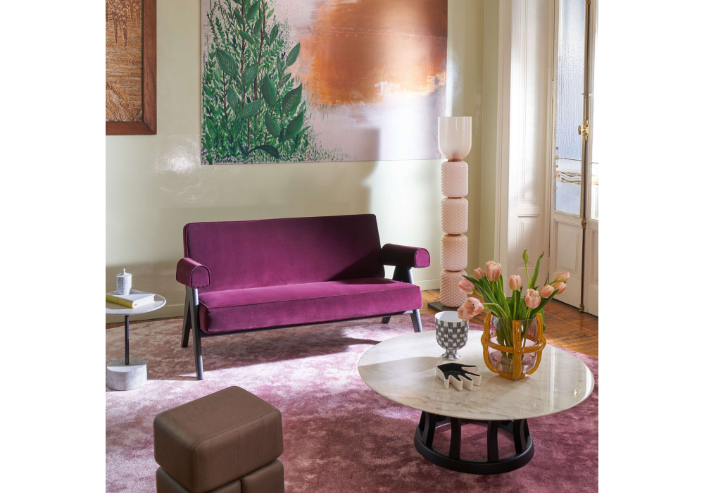 053 Capitol Complex Sofa firmato da Cassina è un divano realizzato con schienale e sedile rivestiti in tessuto o in pelle e struttura in legno massello.