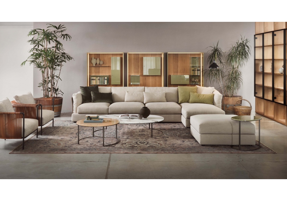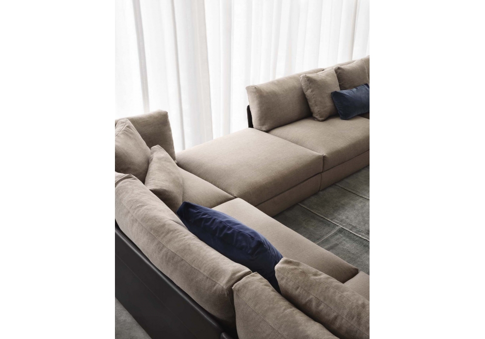 Groovy firmato da Officinadesign Lema per Lema è un divano modulare con struttura realizzata in multistrato con molleggio garantito da cinghie elestiche in caucciù, braccioli e schienali in legno multistrato di pioppo curvato e rivestito in vellutino. Piedini in abs con antiscivolo in gomma.