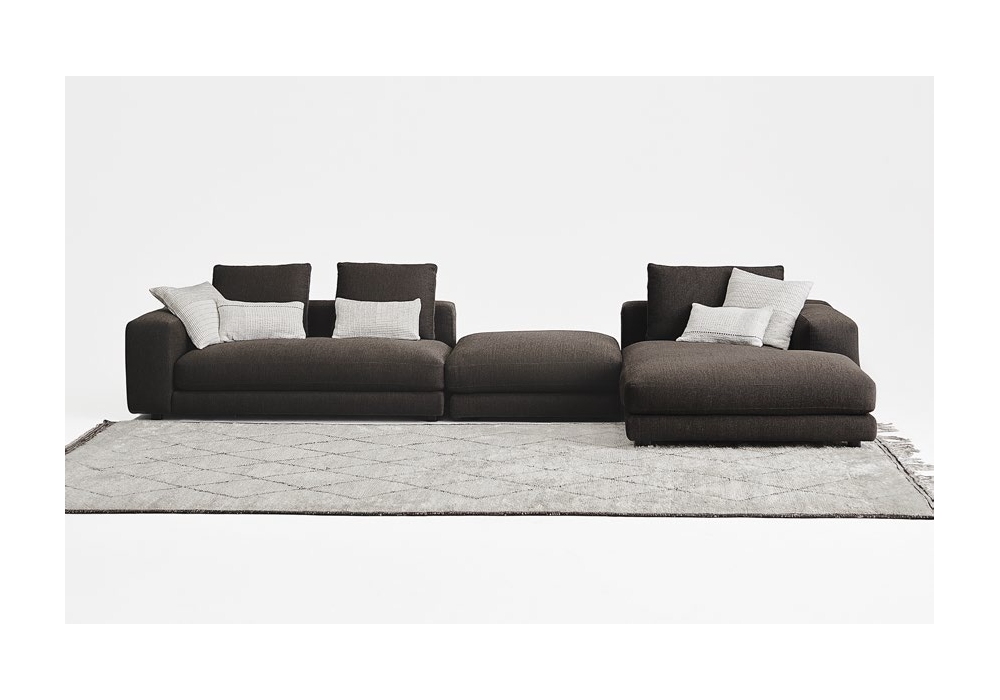 Rio firmato da Palomba Serafini Associati per Ferri 1956 è un divano componibile con struttura in legno massello di abete e pannelli di particelle di legno, con cinghie elastiche. Imbottitura in espanso e piuma d'oca con rivestimento in differenti tessuti. Piedi in legno nero.