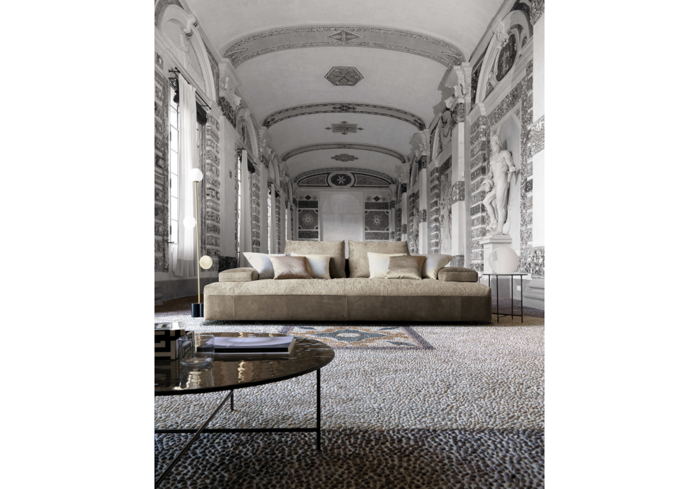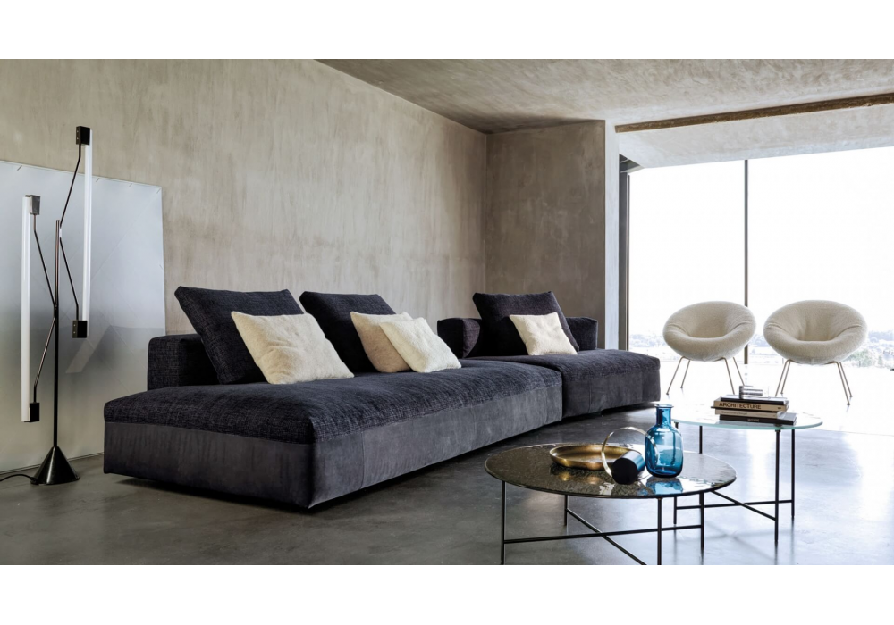 Glow In firmato da Marc Sadler per Désirée è un divano modulare con struttura in legno massello e multistrato con imbottitura in poliuretano con densità differenziata, Dacron e rivestimento in tessuto o pelle completamente sfoderabile. Piedini in polipropilene. Su richiesta disponibile nella versione bicolore.