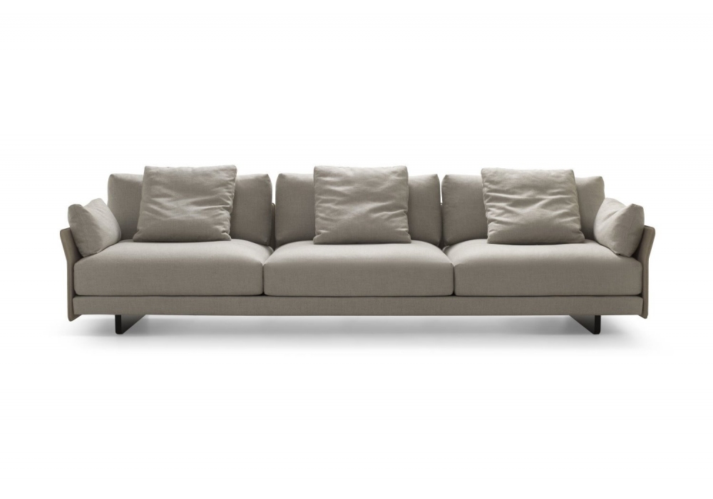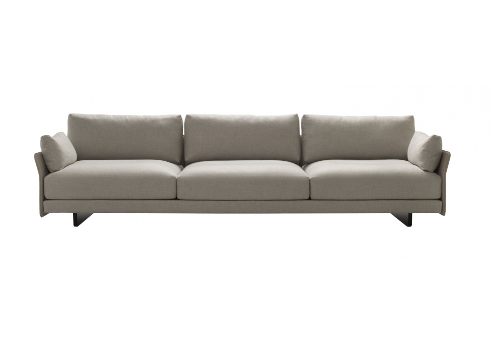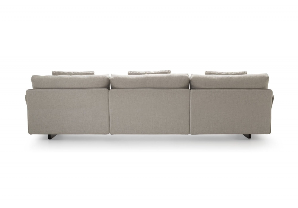Murphy firmato da Umberto Asnago per Bodema é un divano componibile con braccioli stretti e schienali slim in pelle o tessuto, cuscini in piuma d’oca e piedini alti in MDF nero. Personalizzabile per rivestimento e dimensioni, può essere configurato nei modelli lineare, angolare, con chaise longue o pouf terminale.