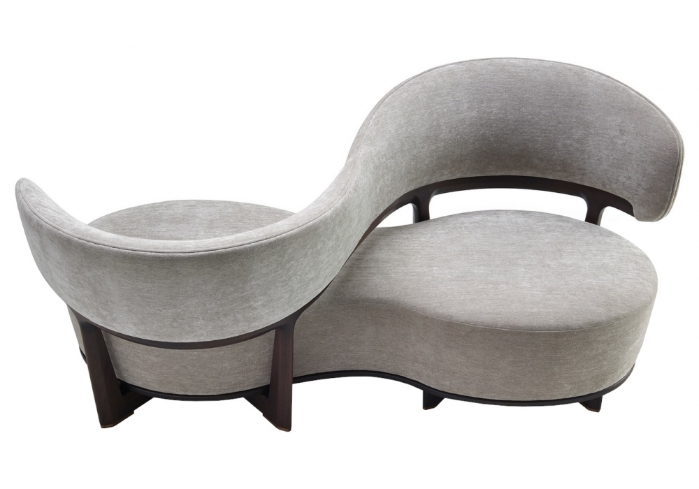 Ico Vis à Vis firmato da Roberto Lazzeroni per Ceccotti Collezioni è un divanetto con struttura realizzata in massello di noce americano. Seduta e schienale in multistrato di pioppo, imbottiti, rivestimento in tessuto o pelle. Piedini in ottone. Disponibile in diverse finiture.
