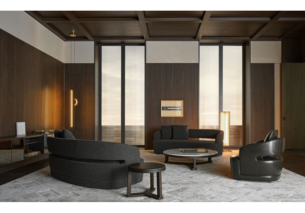 Lucio firmato da Vincent Van Duysen per Molteni&C è un divano realizzato con imbottitura struttura in poliuretano espanso ad alta portanza a densità variabile, fodera in vellutino accoppiato cotone fibra poliestere. Piedi in alluminio verniciato con puntali antiscivolo in materiale plastico e rivestimento in tessuto o in pelle.