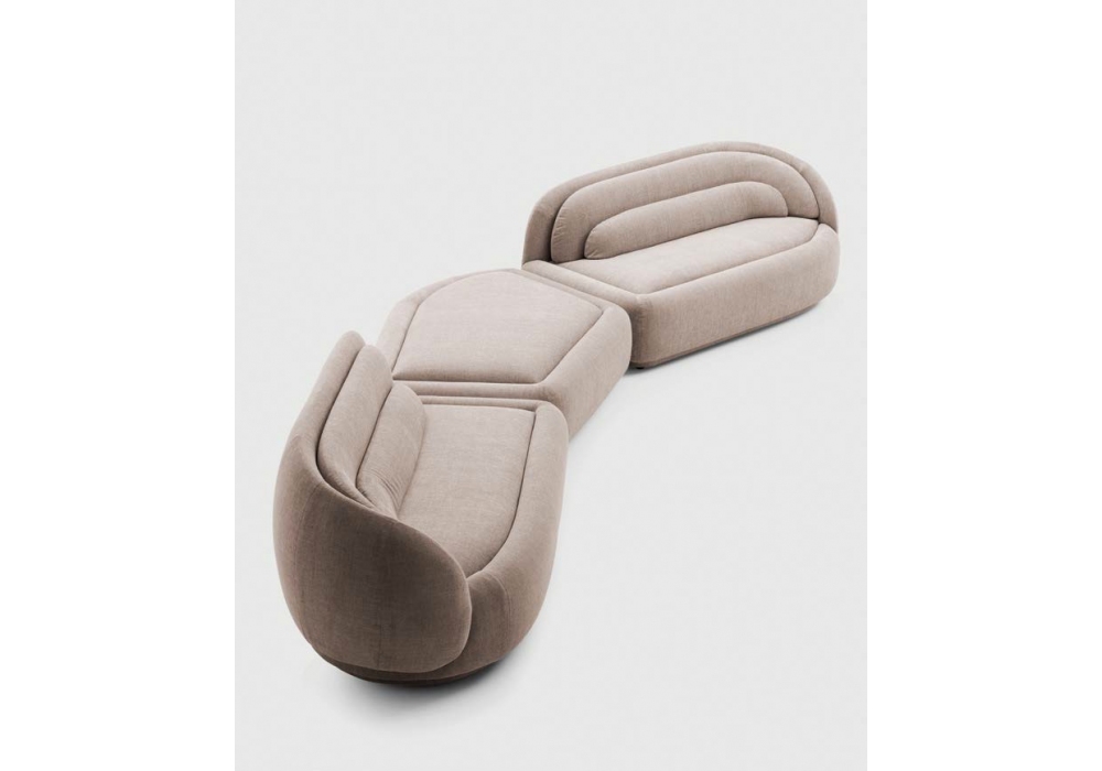Peonia firmato da Cristina Celestino per Pianca è un divano modulare realizzato con rivestimento in tessuto o in pelle. Zoccolo laccato nero opaco.