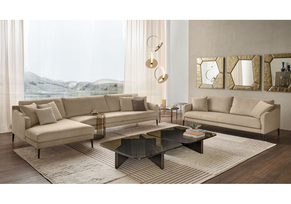Condense firmato da This Weber per Fiam è un divano con telaio in legno multistrato. L'imbottitura della seduta è in poliuretano a densita variabile mentre quella dello schienale è in piuma d'oca sterilizzata. Il rivestimento è in pelle o tessuto. I piedini sono in alluminio pressofuso verniciati di nero lucido. Condense è disponibile in differenti modelli e finiture.