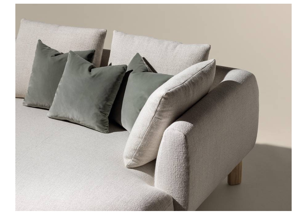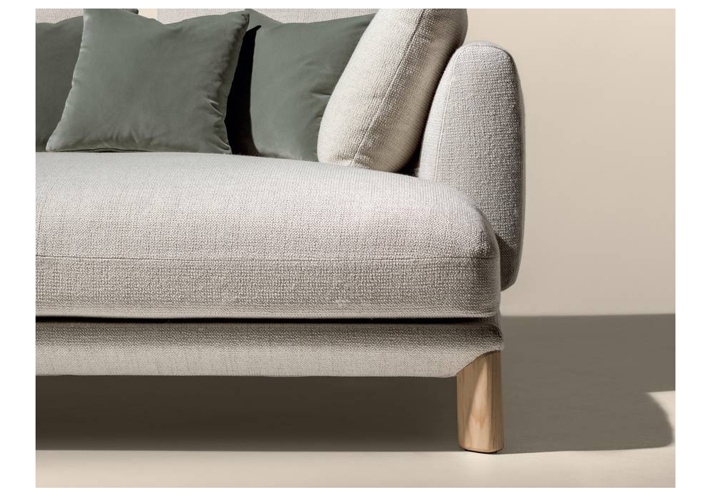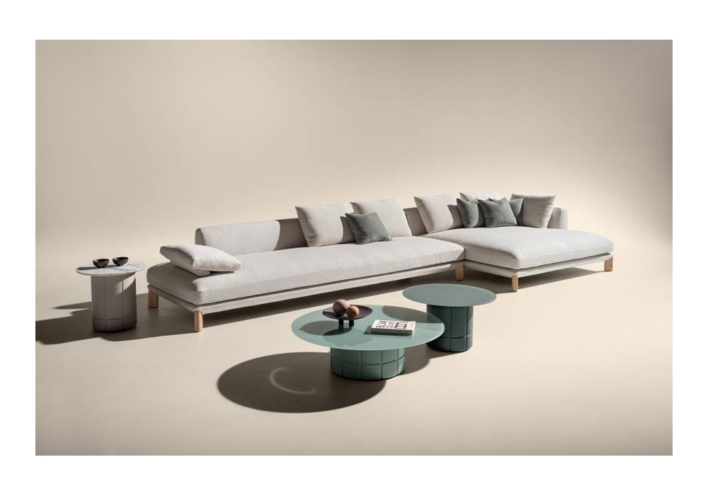 Altana firmato da Monica Armani per Lago è un divano modulare con morbida imbottitura e rivestimento in tessuto per offrire un comfort ottimale. Gambe in legno di rovere a sezione ovoidale che si intersecano a 45° con la base.