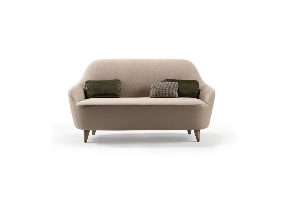 Nuvola Lounge firmato da Tulczinsky per Reflex Angelo è un divano con struttura in legno imbottita. Gambe in legno finitura bronzo, ottone, ottone scuro o titanio. Rivestimento in tessuto o in pelle con opzionale trapuntatura S.Marco sul sedile.